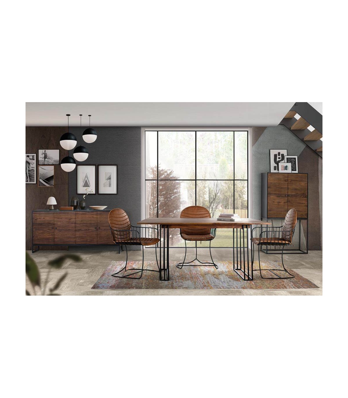 • Mesa de comedor fija, estilo industrial.