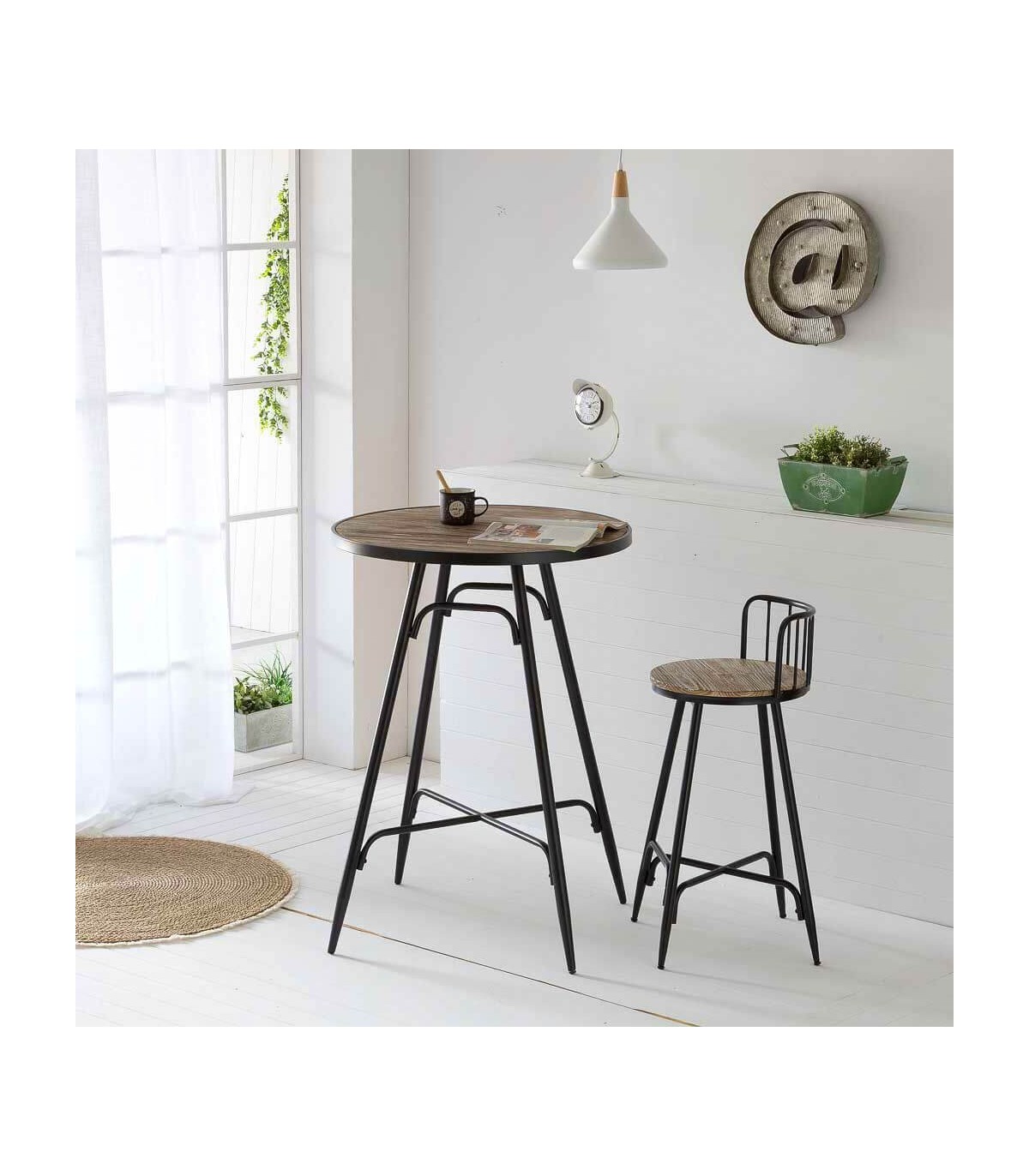 MESA ALTA 76 Ø X 105 CHULA METAL NEGRO MADERA NATURAL
