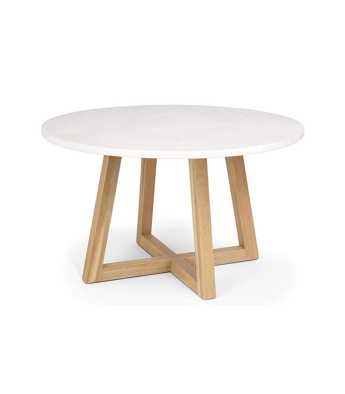 MESA DE COMEDOR REDONDA GRANDE 140 Ø X 76 PLUNTA MADERA NATURAL MICROCEMENTO BLANCO