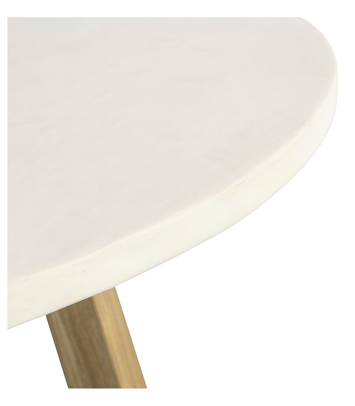 Combinando materiales nobles y diseño depurado, esta mesa de comedor redonda de gran formato aporta armonía y calidez a cualquier ambiente contemporáneo. La tapa en microcemento blanco, de acabado suave y mate, contrasta con la estructura de madera maciza de mango en tono natural, creando una pieza equilibrada y funcional.