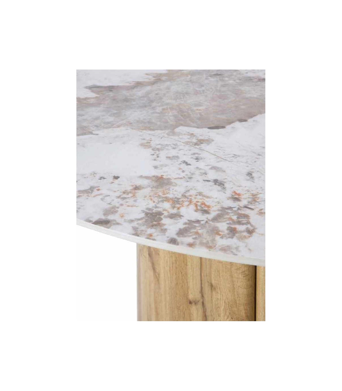 MESA DE COMEDOR REDONDA 120 Ø X 75 MOON MDF ROBLE CERAMICO BLANCO