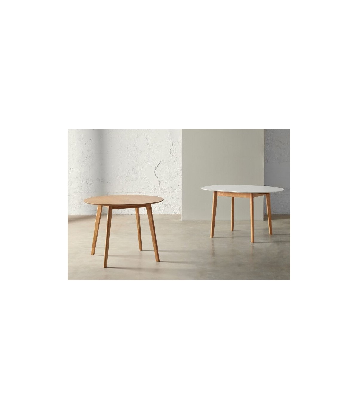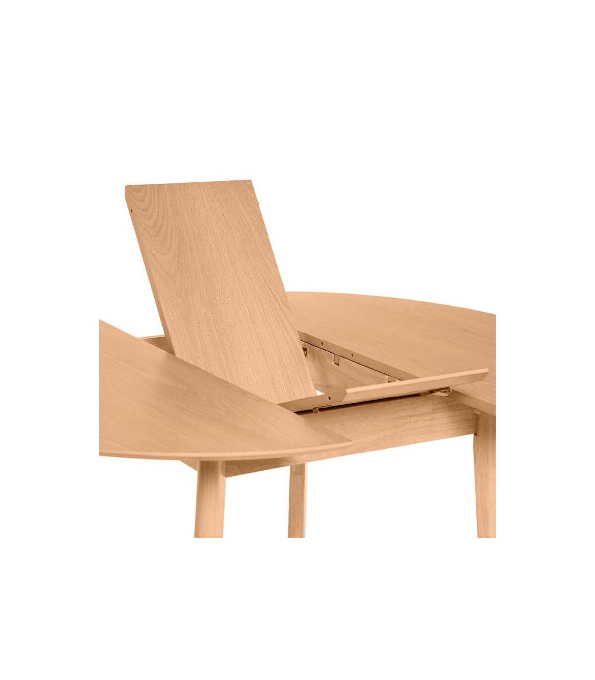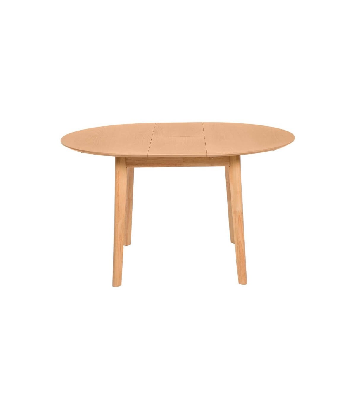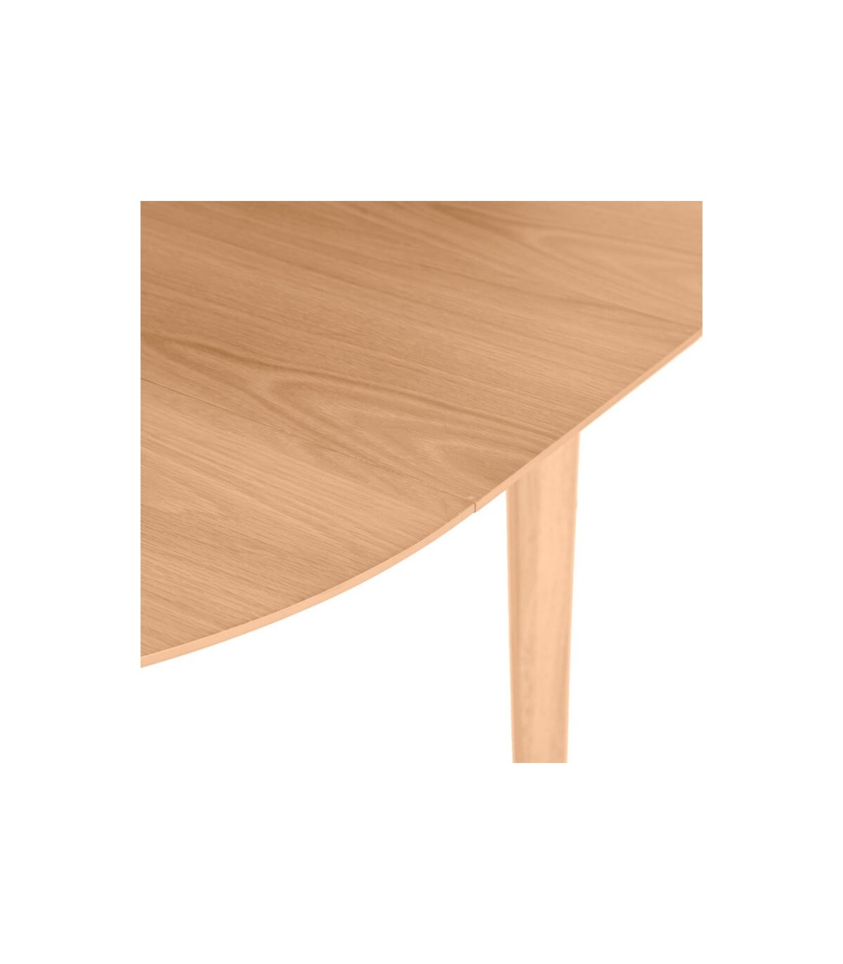 Mesa de comedor redonda extensible, realizada en madera de roble acabado natural, una mesa cómoda y sencilla.