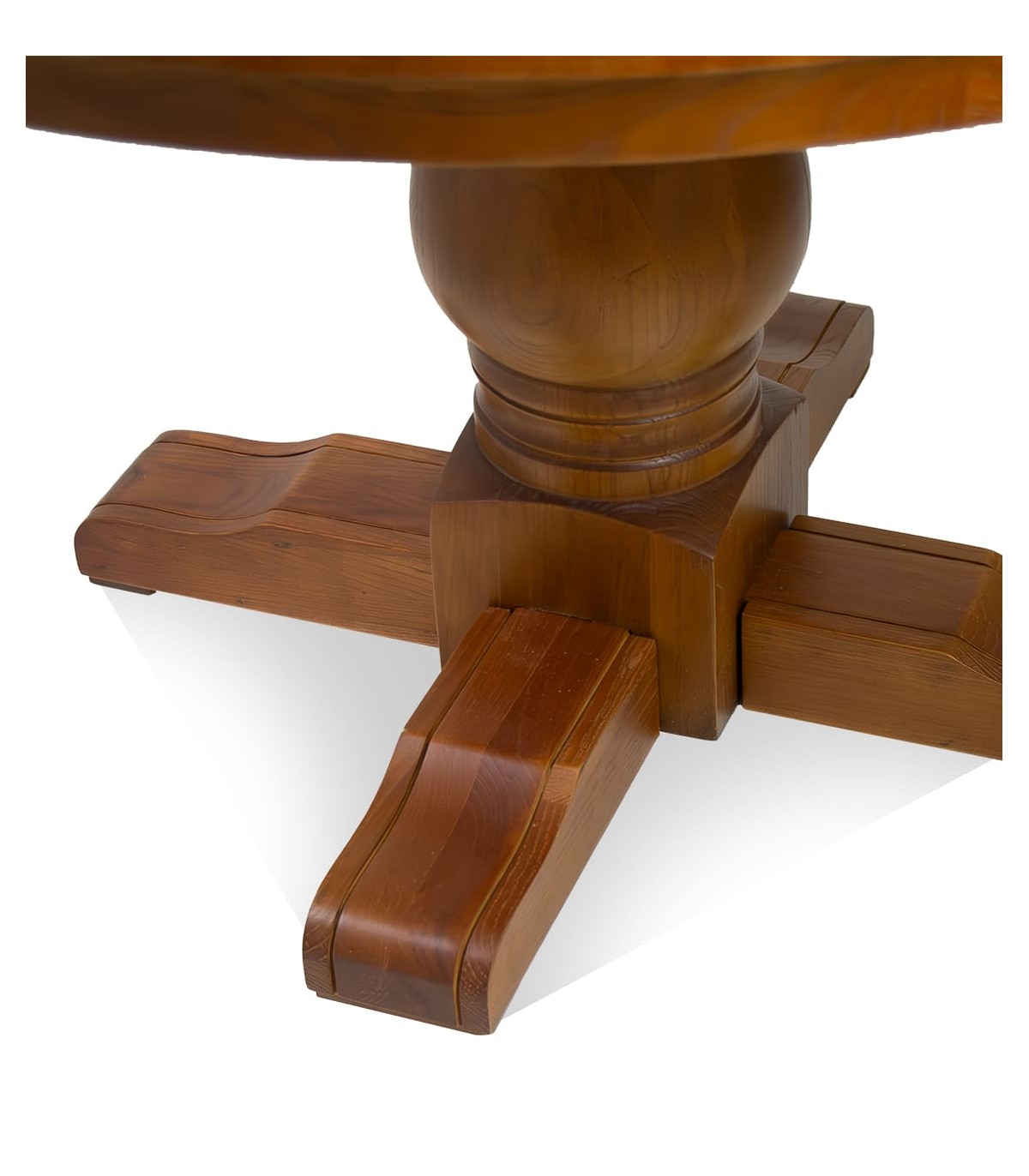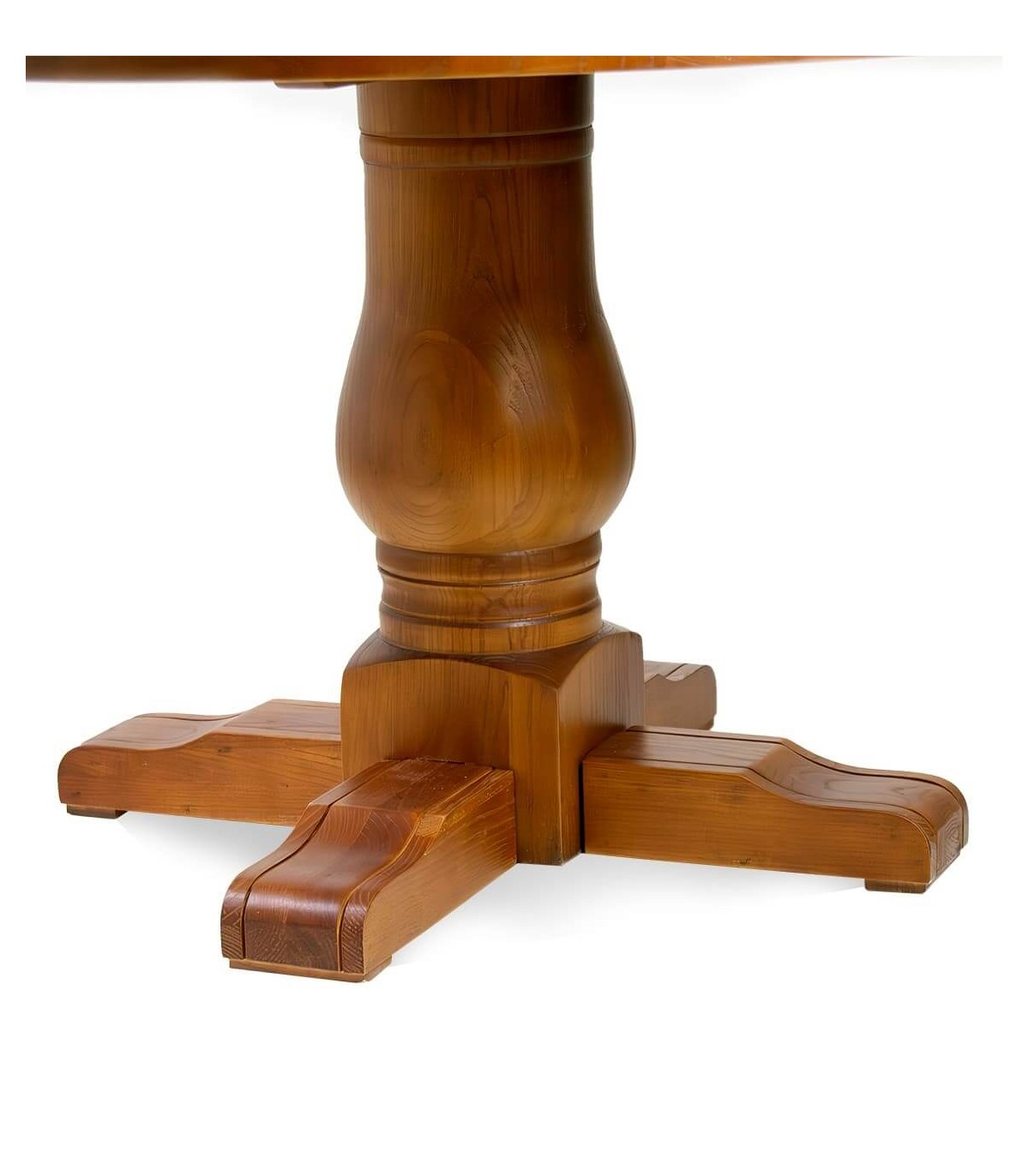 Mesa de comedor grande realizada en madera maciza de roble con el pie troneado y tallado teñida en color cerezo, una mesa de comedor con ese aire provenzal que aporta calidez.