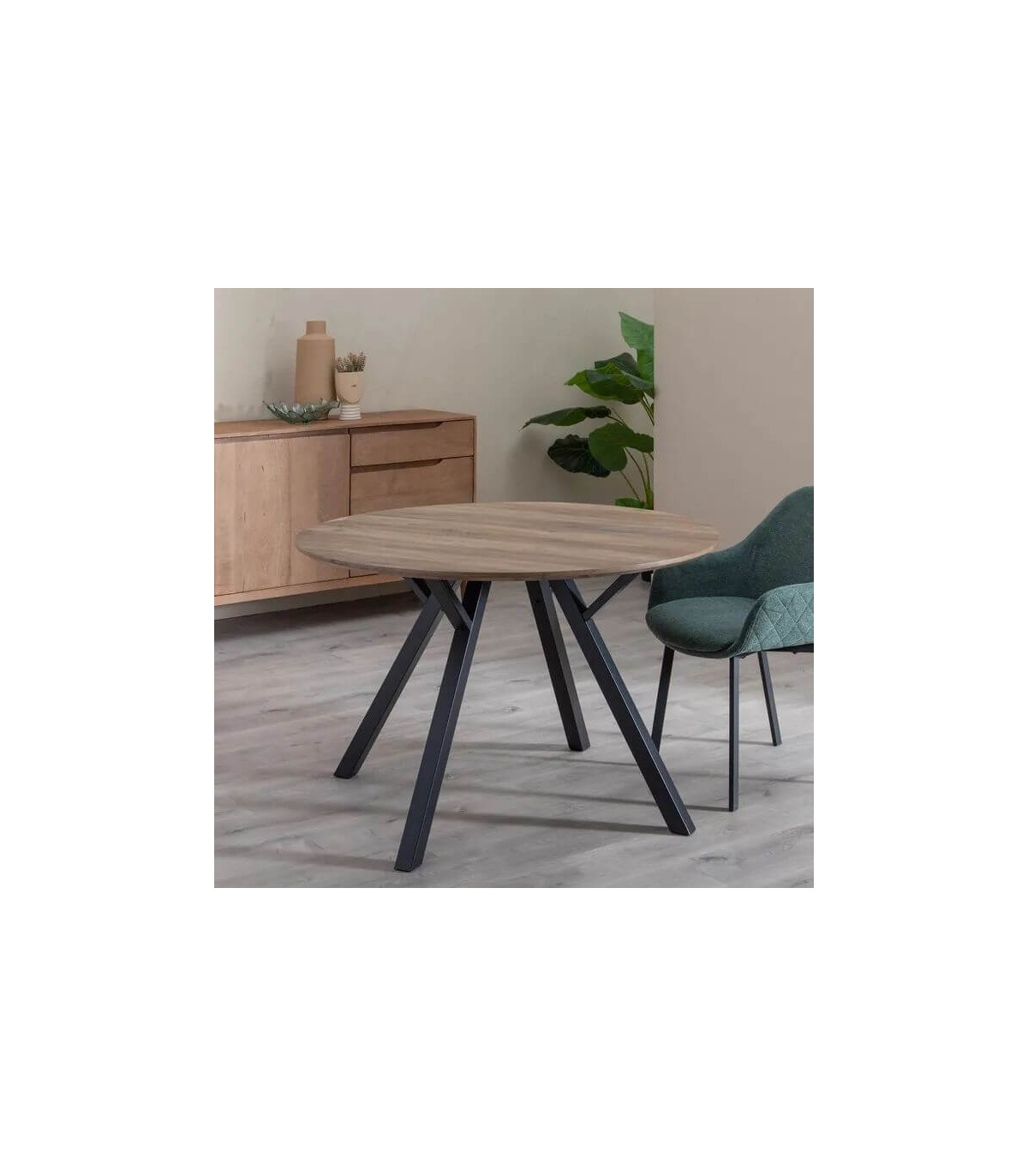 MESA DE COMEDOR 120 Ø X 75 VISTA METAL NEGRO MADERA DM