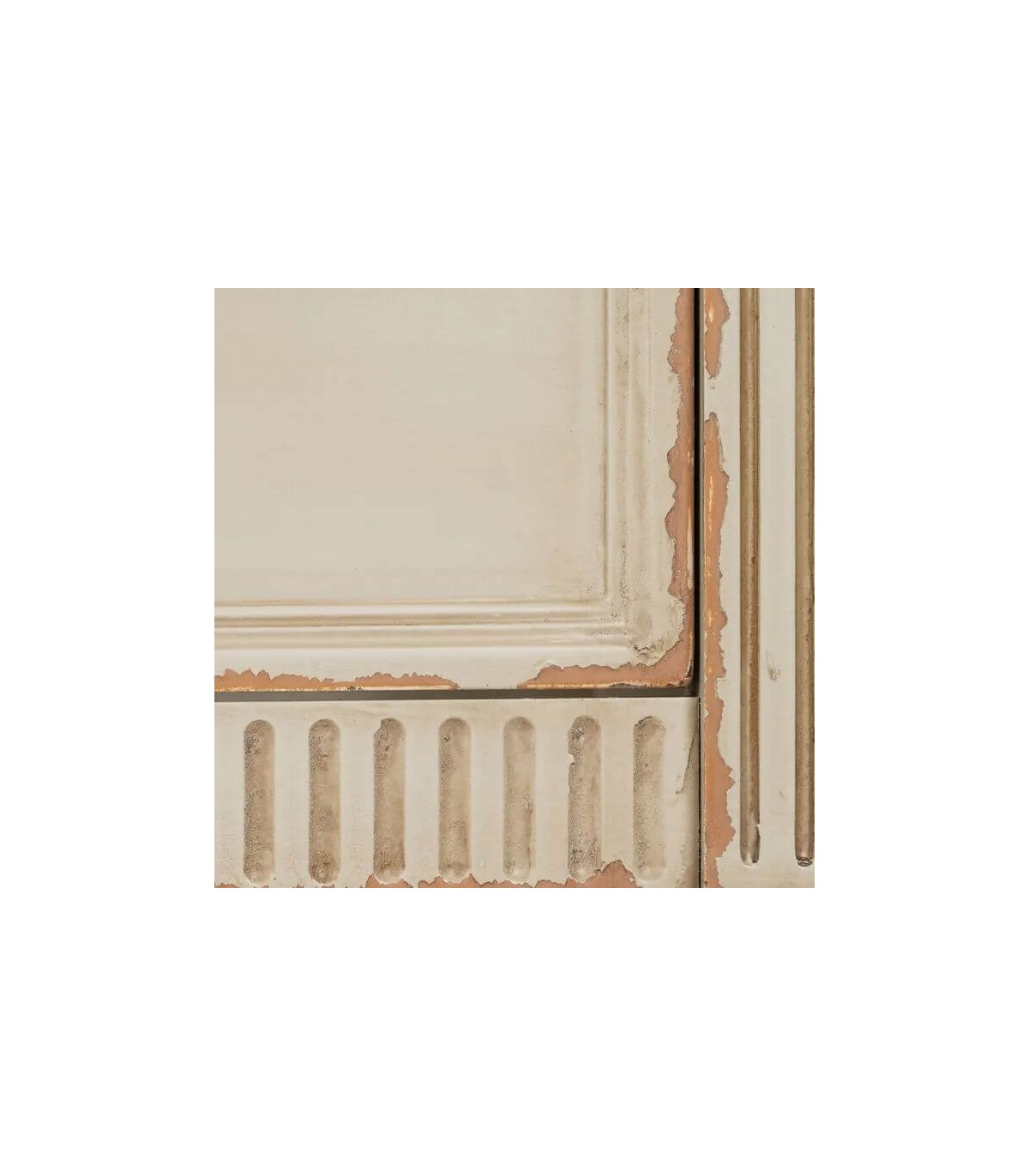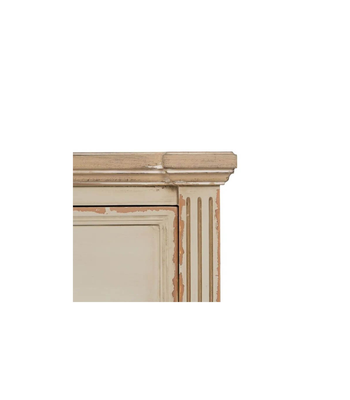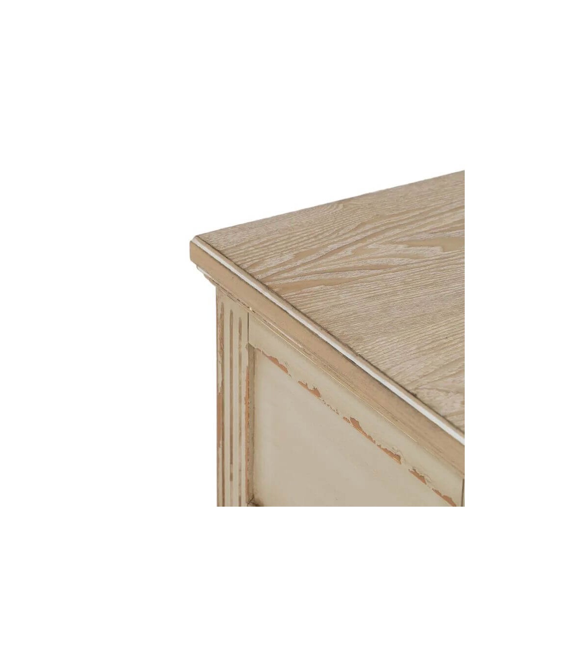 Acabado, artesanal, madera de abeto dm en blanco rozado, tiradores metal.