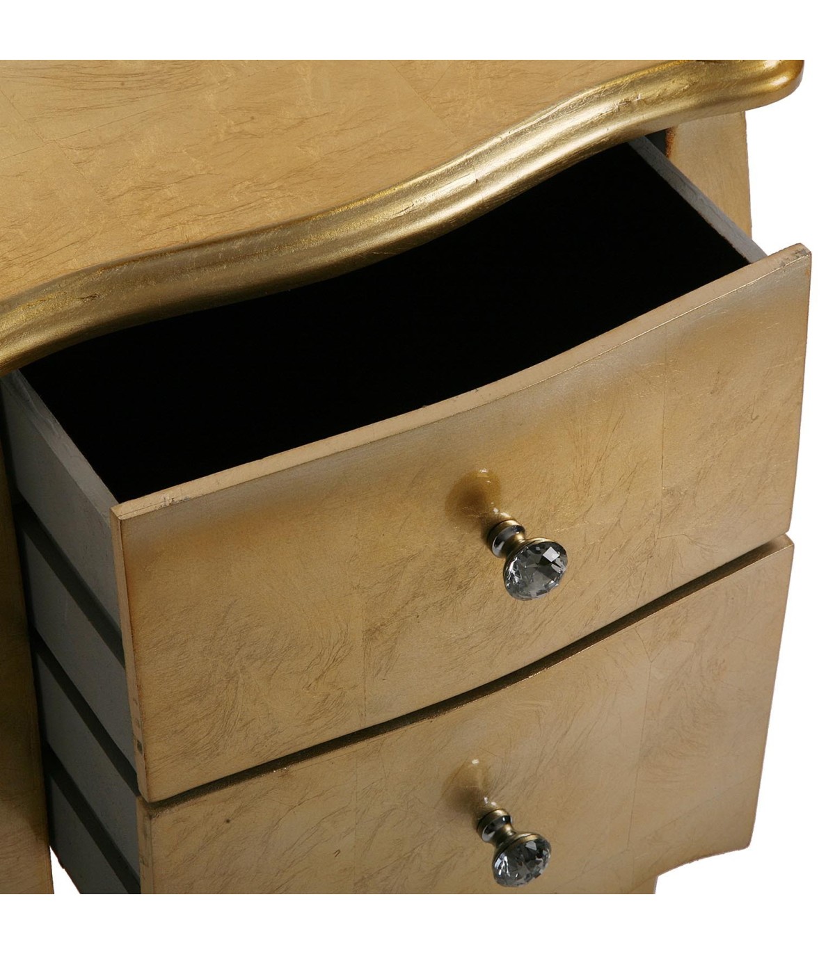 • Acabado, madera acabada en pan de oro, tiradores de cristal transparente.