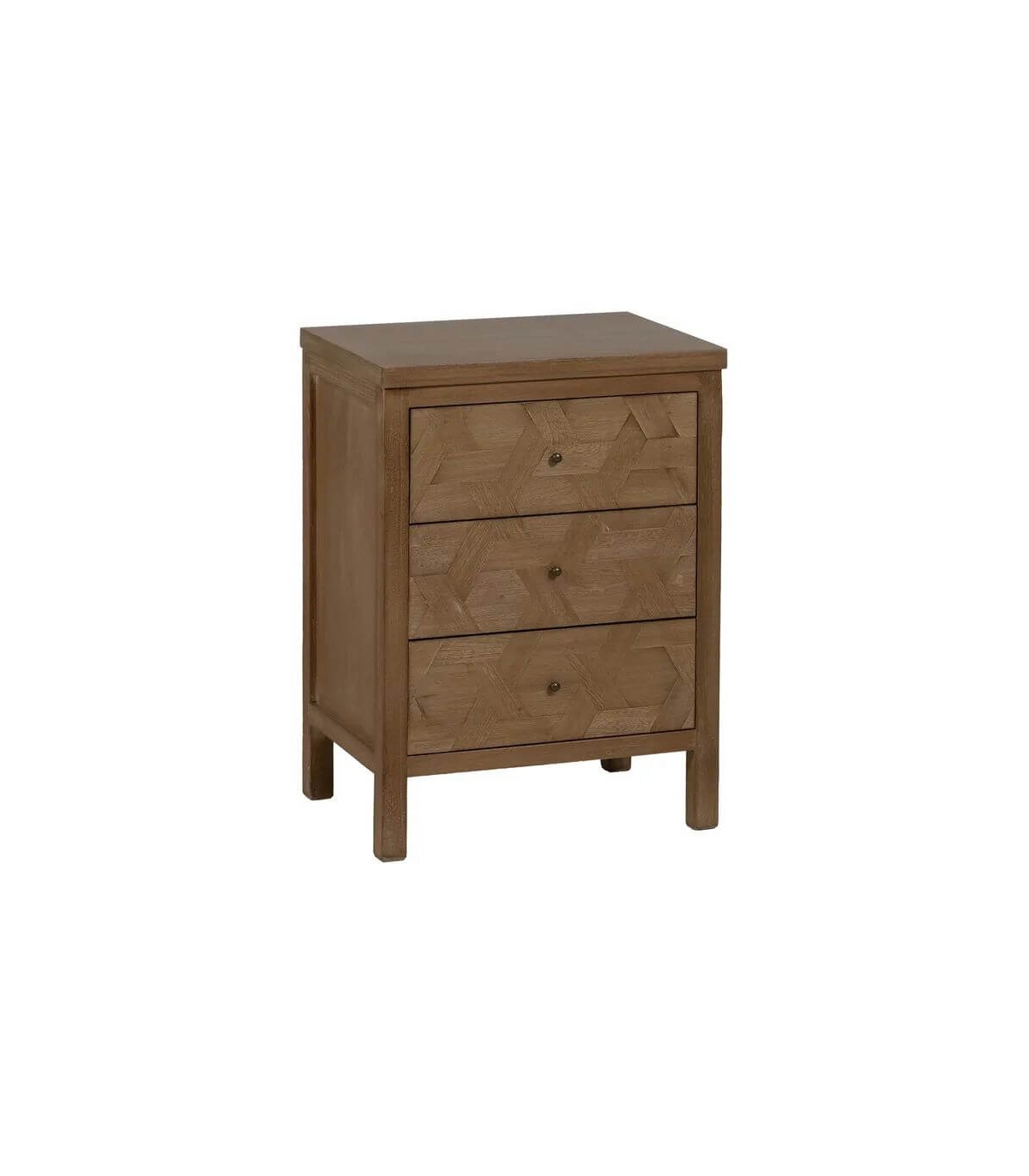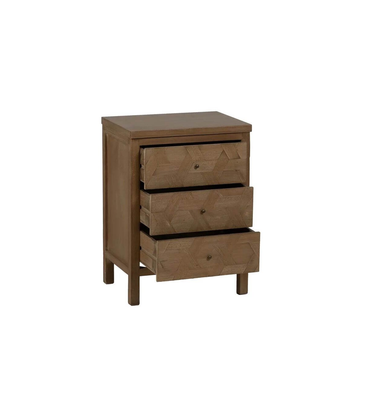 Mesita de noche estilo colonial, estructura hecha en madera de paulonia, el resto en dm, un mueble sencillo que aporta calidez al ambiente.