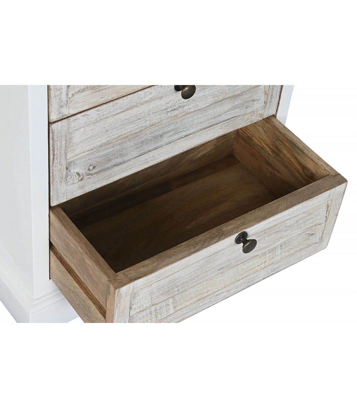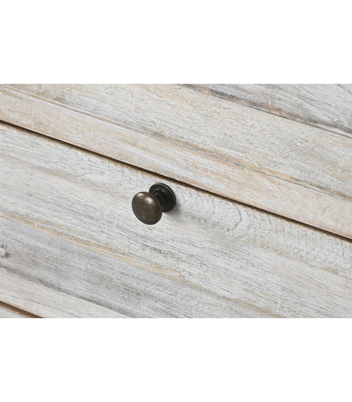 Su acabado en madera blanqueada de dos tonos, junto con los tiradores de metal en oro viejo, crea una pieza luminosa, versátil y cálida, ideal para ambientes bohemios, escandinavos o mediterráneos que apuestan por la autenticidad y la belleza natural.