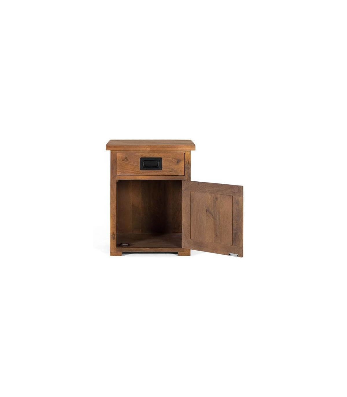 Mesita de noche de estilo colonial realizado en madera de mango, un mueble que aporta calidez al dormitorio, adaptable a cualquier tipo de decoración.