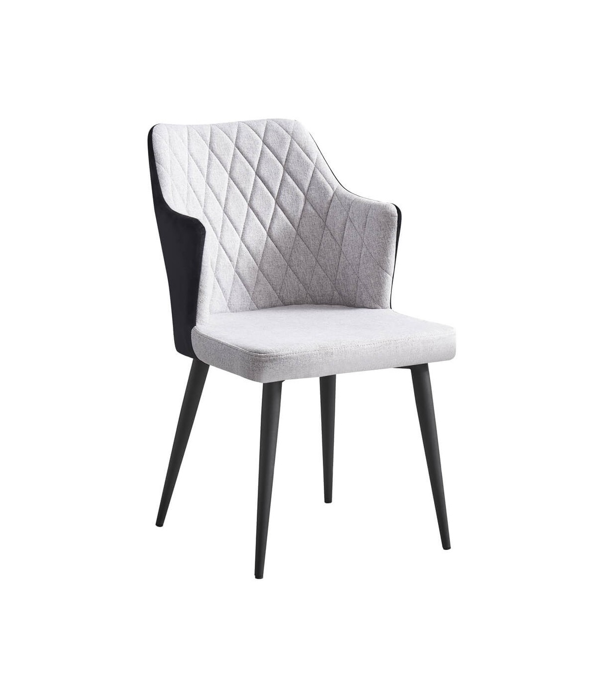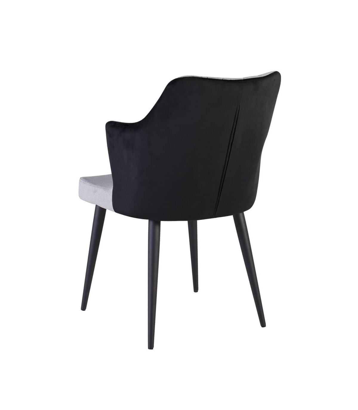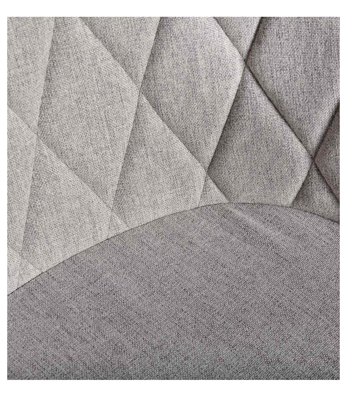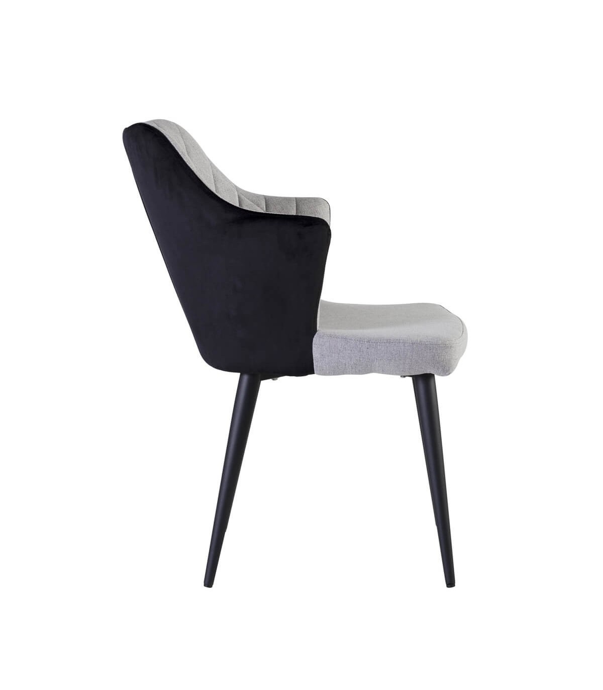 Sillón tapizada en color negro y gris con patas ligeramente inclinadas en acero negras.