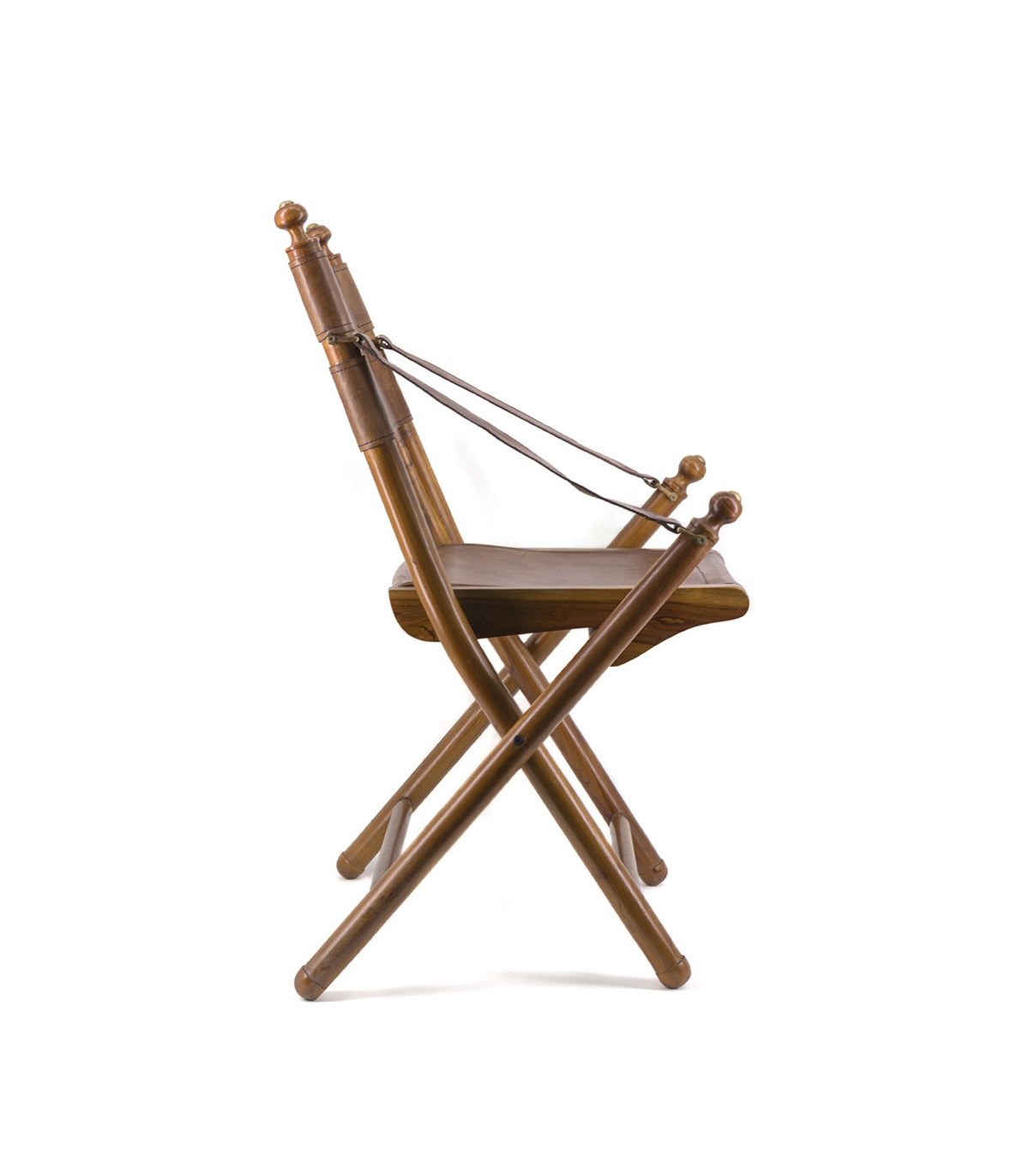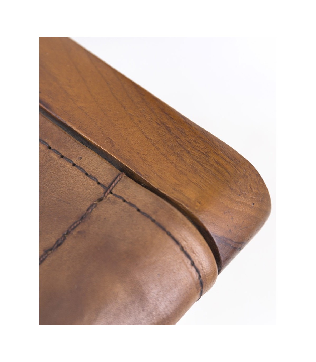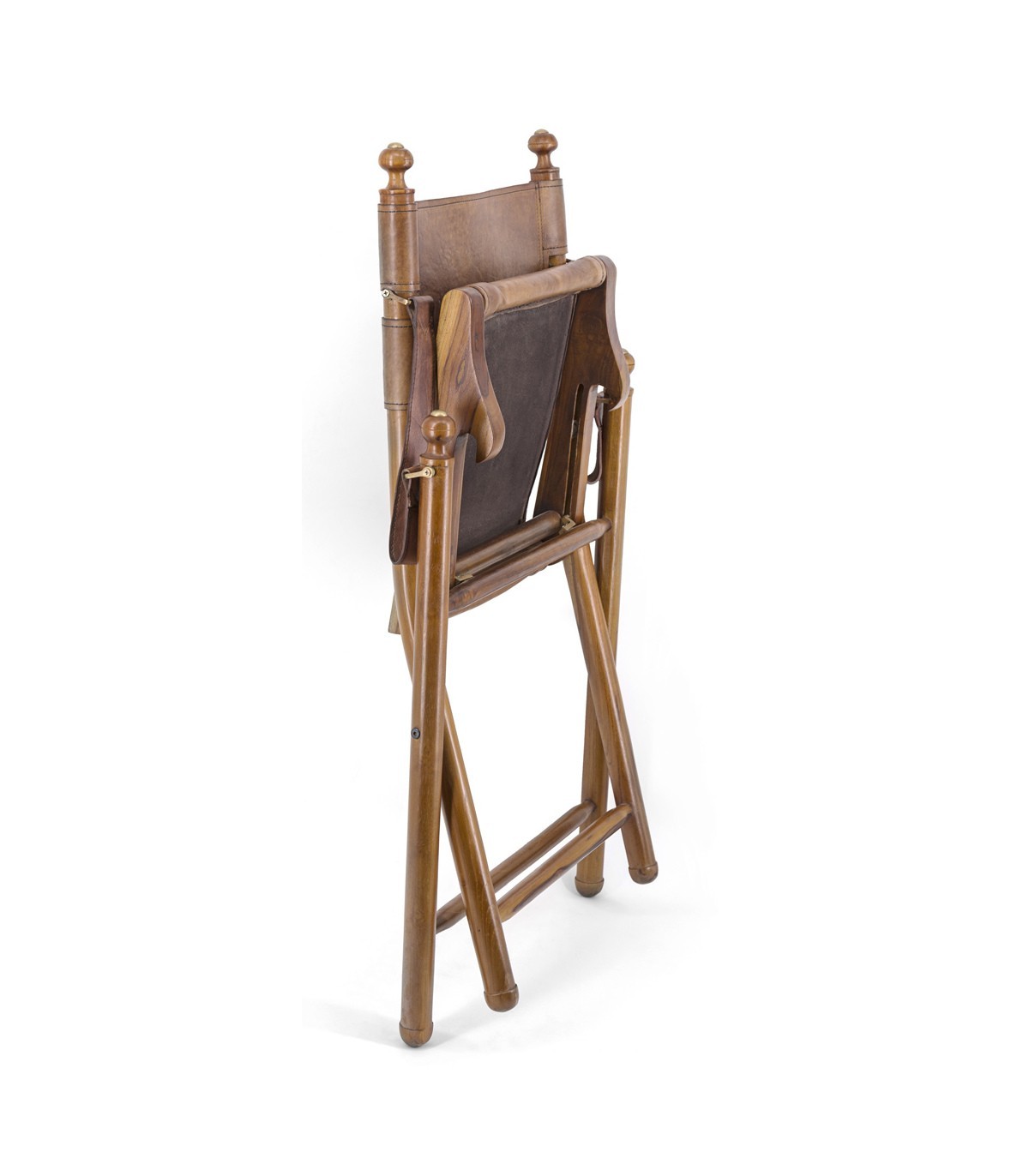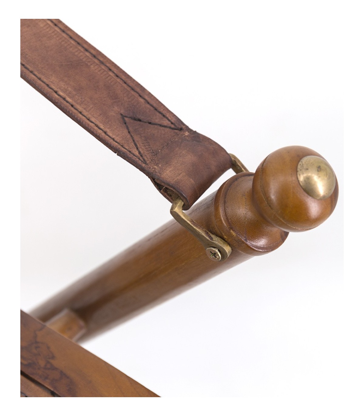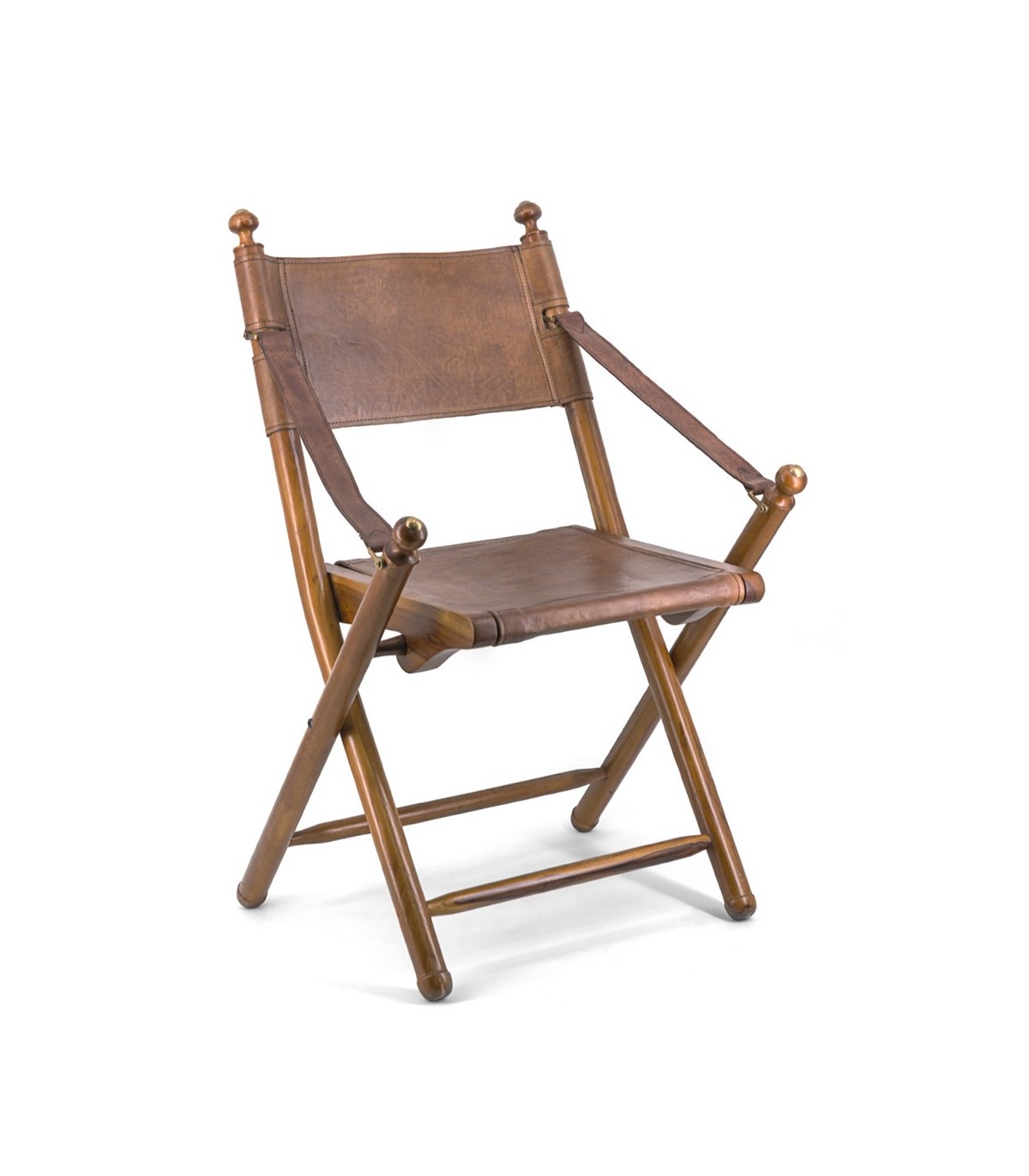 Este sillón de comedor plegable combina a la perfección el estilo rústico vintage con un diseño práctico y funcional. Fabricado en madera maciza de teca natural, ofrece una estructura resistente y duradera, ideal para el uso diario. Su asiento y respaldo están tapizados en piel auténtica, lo que aporta un toque de elegancia y exclusividad, mientras que las aplicaciones en bronce envejecido refuerzan su estética vintage y artesanal.