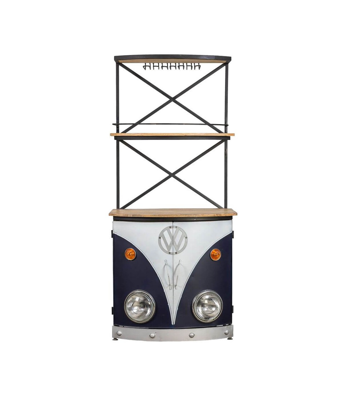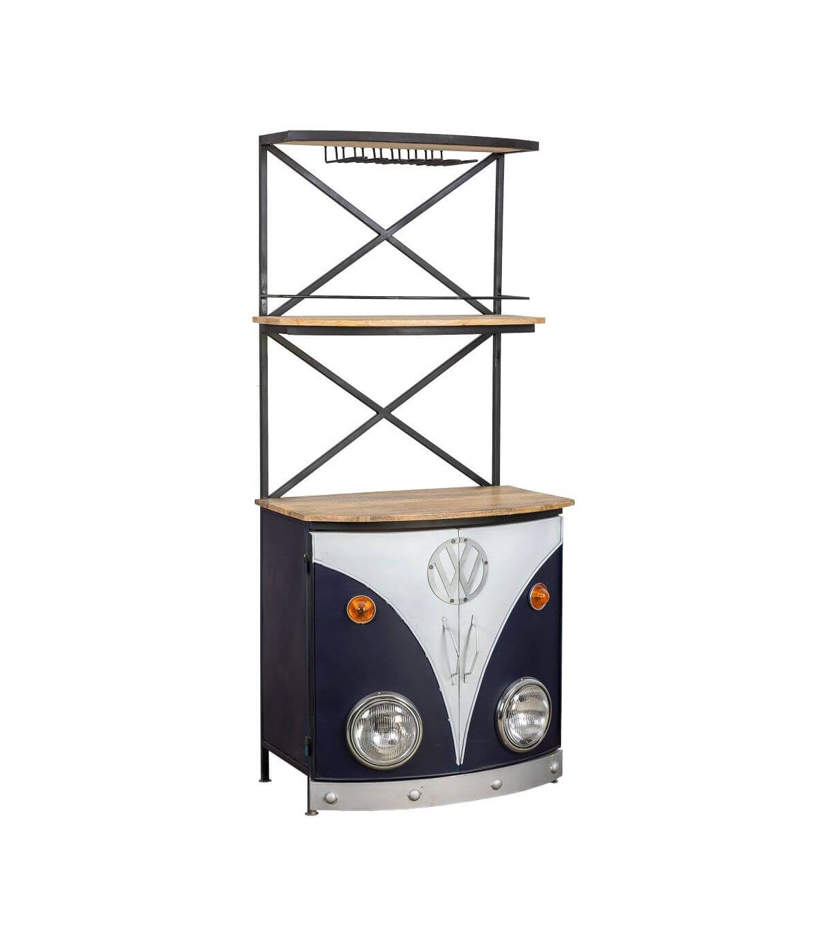 MUEBLE BAR 75 X 60 X 180 CARAVAN METAL AZUL MADERA NATURAL