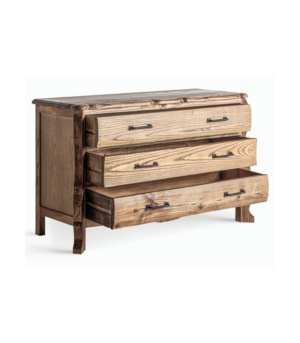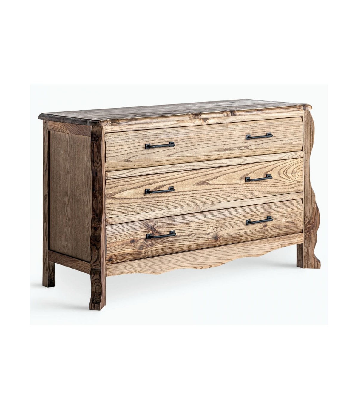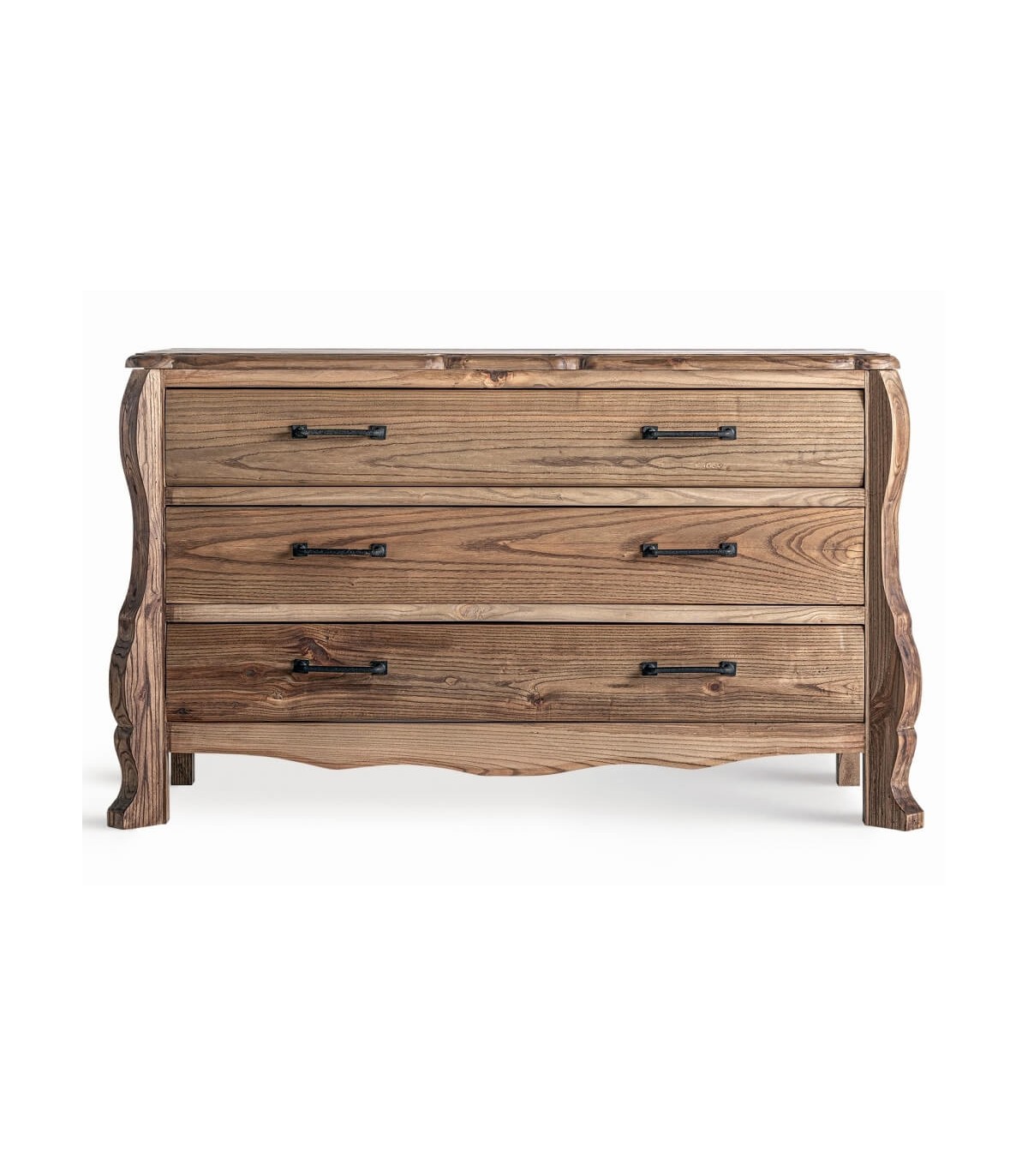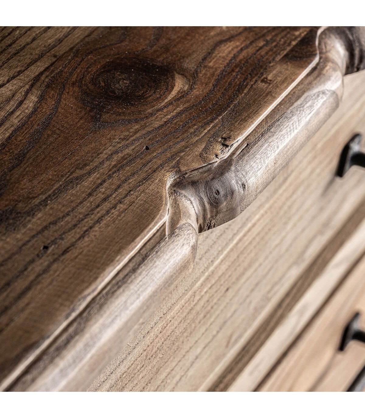 Esta imponente cómoda de estilo clásico está diseñada para destacar por su presencia, calidad y calidez. Fabricada en madera maciza de olmo, su veteado natural y estructura robusta la convierten en una pieza elegante y atemporal.