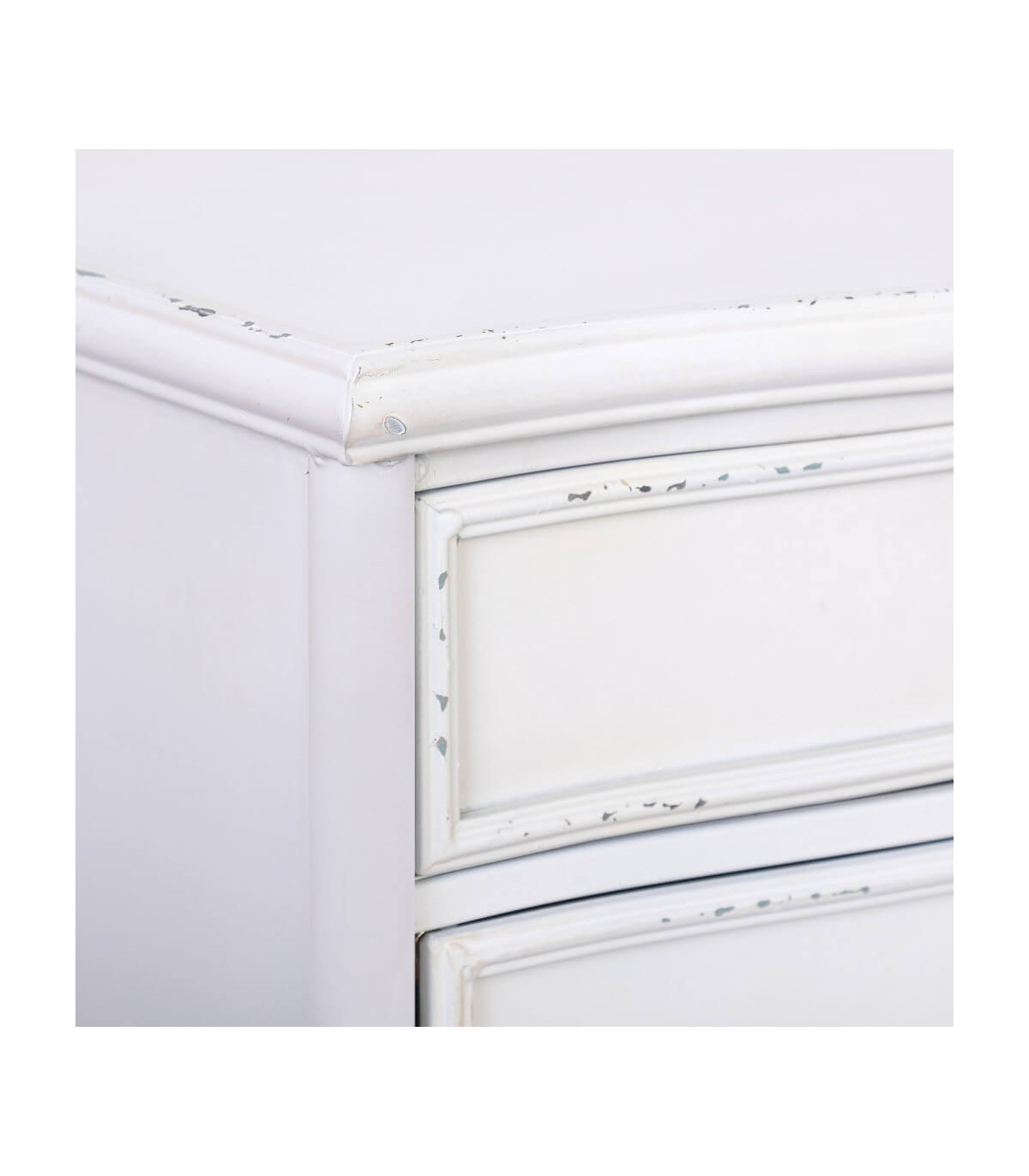 La textura suavemente decapada revela el trabajo artesanal que la hace única y aporta un aire romántico a cualquier dormitorio. Su estructura ligera y resistente encaja en ambientes luminosos, evocando serenidad y calidez. Ideal como mesita de noche o auxiliar, mantiene el carácter vintage con un toque delicado y evocador. Una pieza versátil que suma encanto natural sin restar autenticidad.