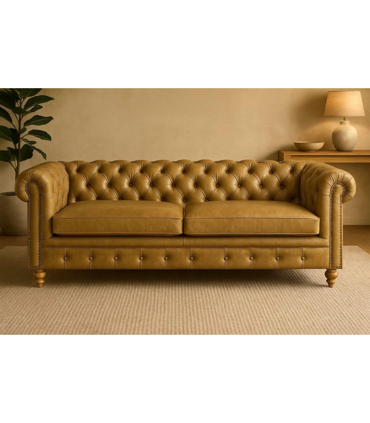 🛋️ Sofá 3 Plazas XXL en Piel Caqui – Estilo Clásico Chester Elegante ✨