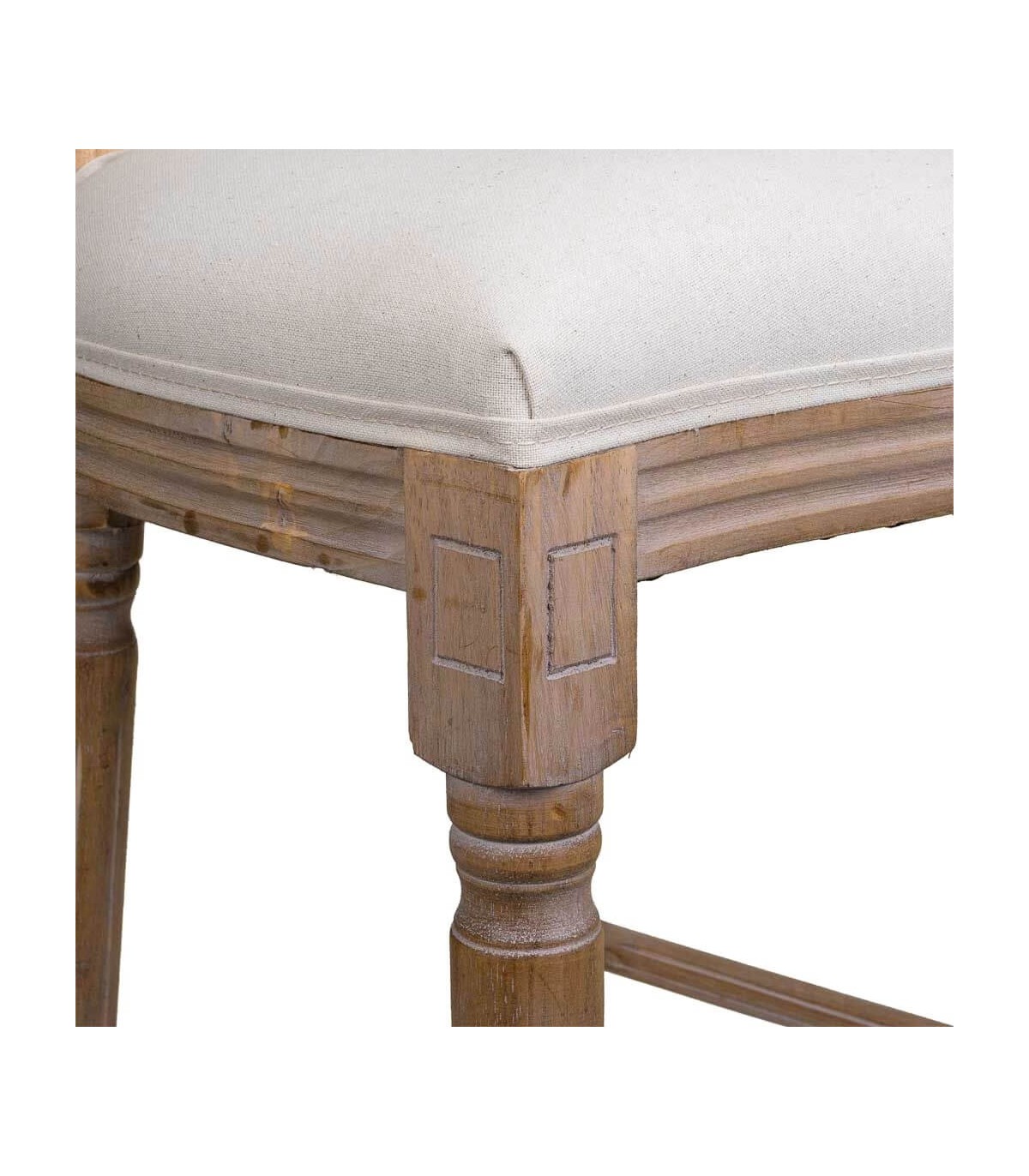 Taburete de estilo clásico, elegante y robusto, realizado en madera maciza con mucho detalle de torneado y el tapizado en lino que aporta naturalidad, un taburete muy cómodo.