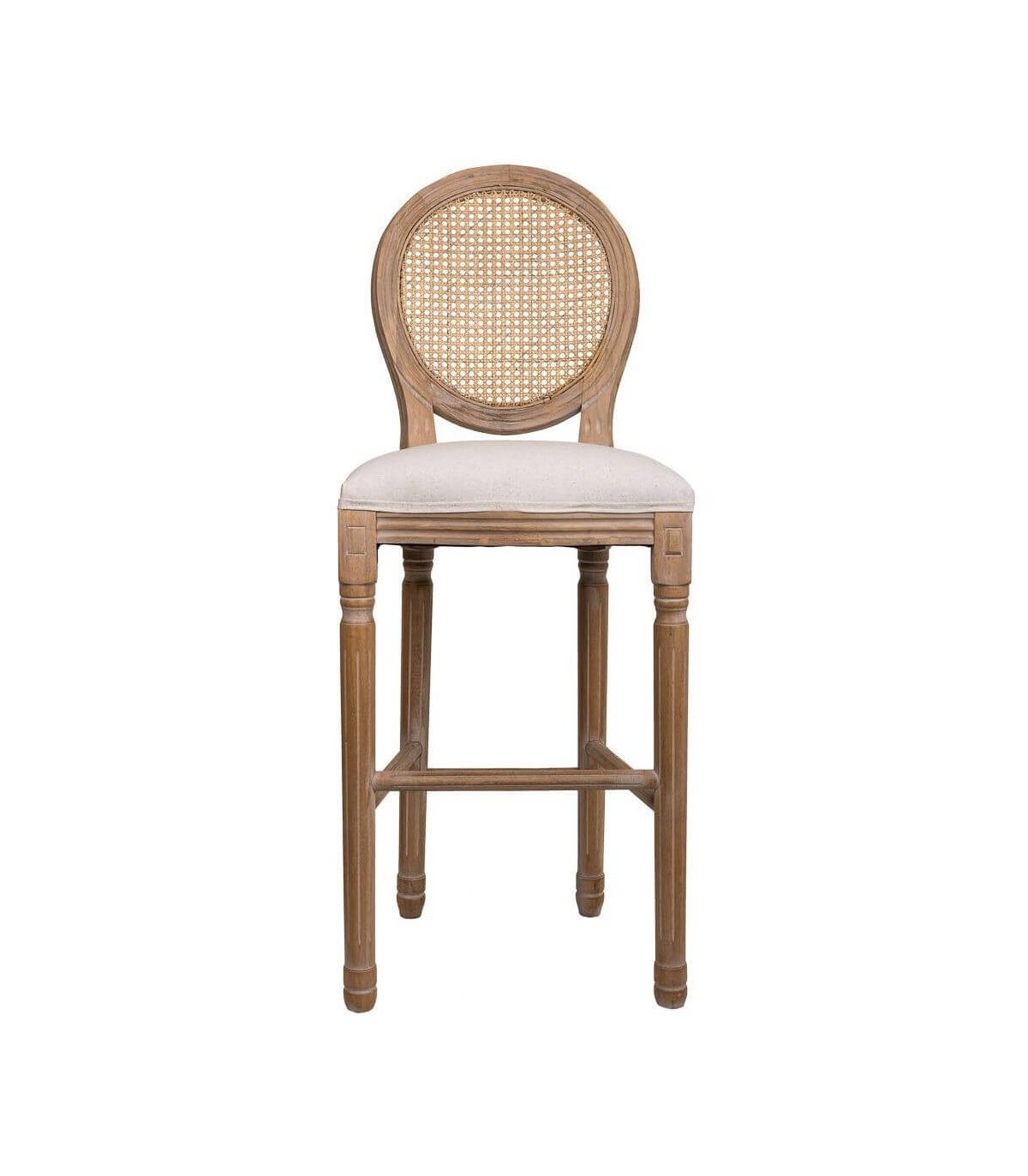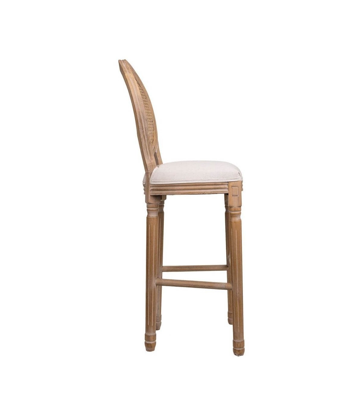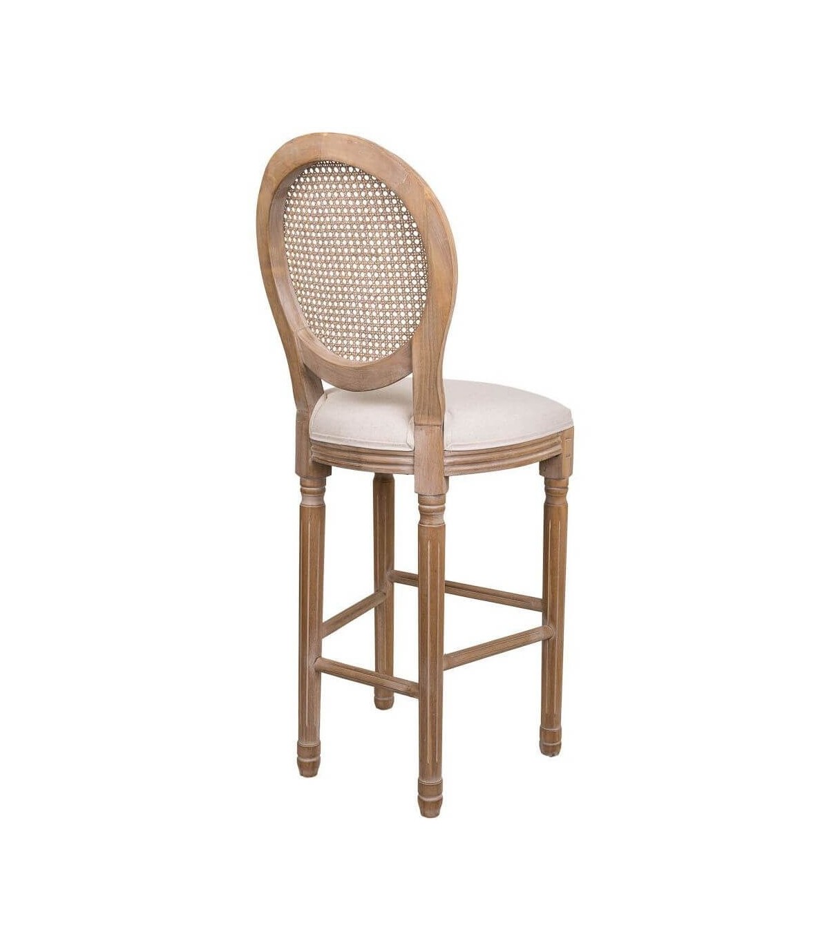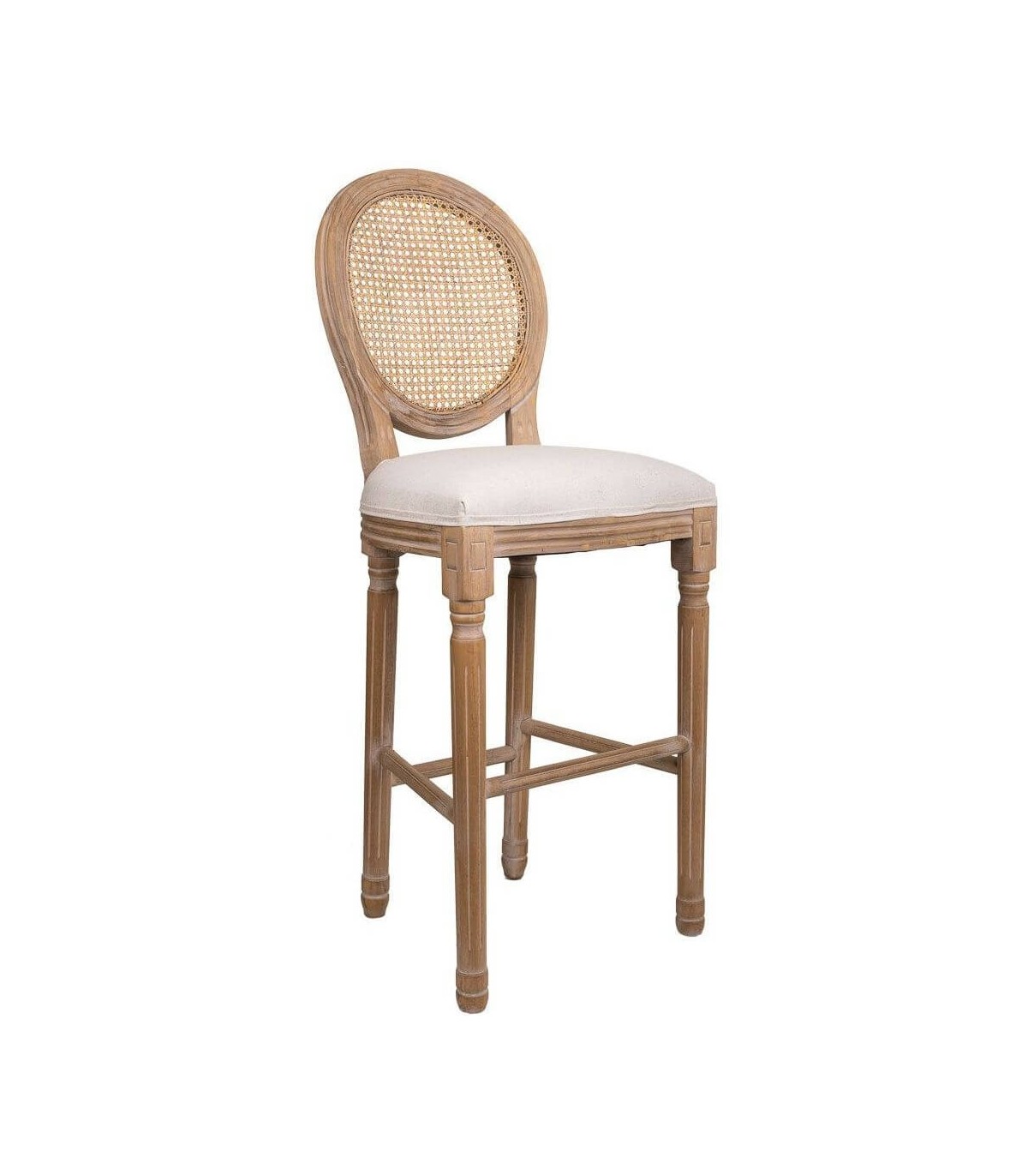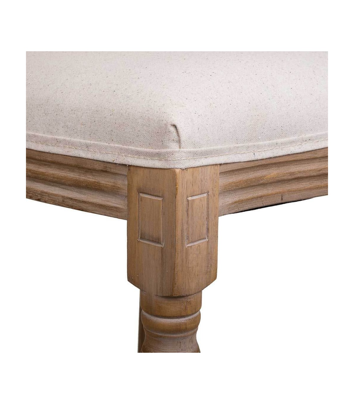 Taburete de estilo clásico, elegante y robusto, realizado en madera maciza con mucho detalle de torneado y el tapizado en lino que aporta naturalidad, un taburete muy cómodo.