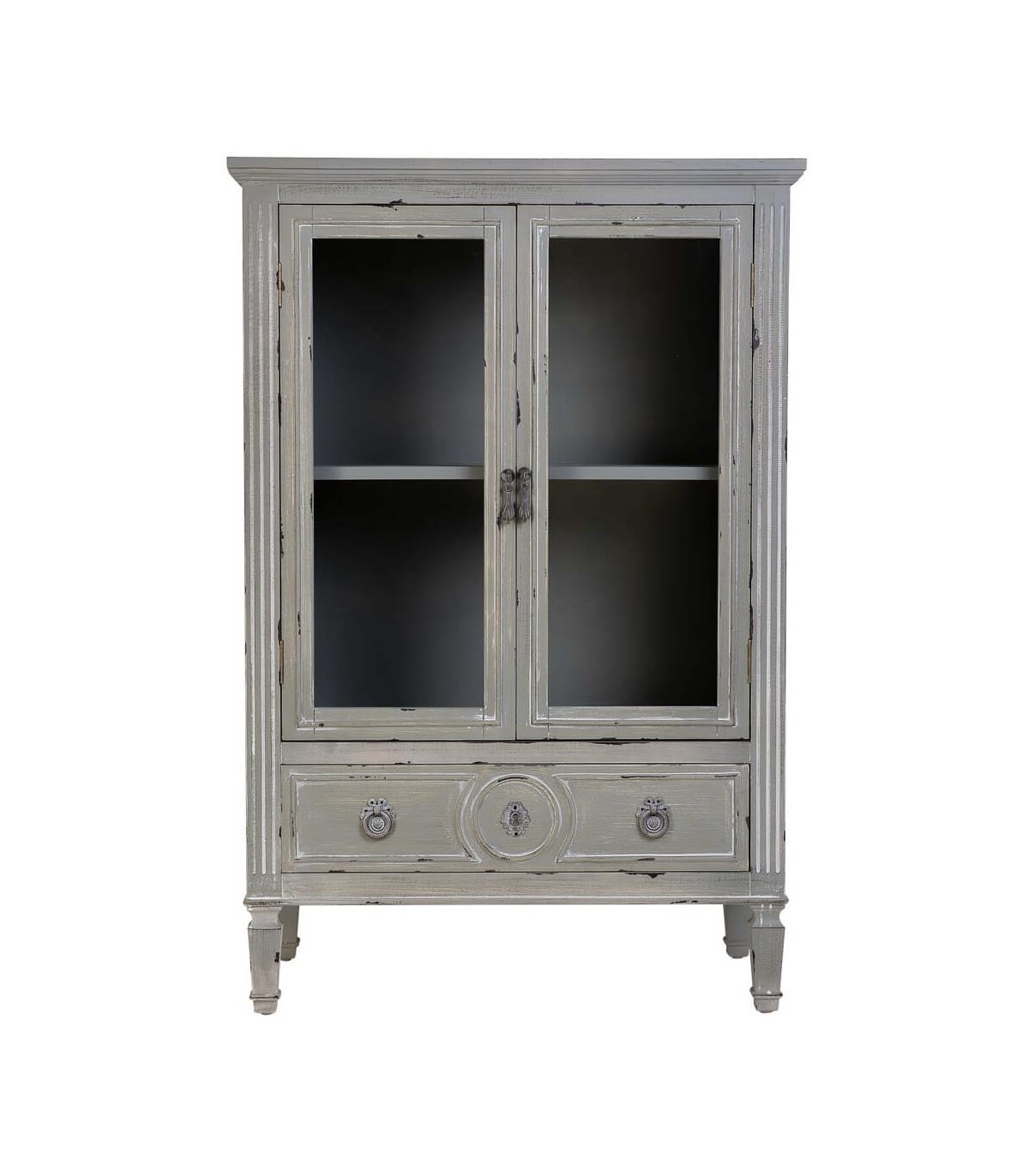 VITRINA BAJA 80 X 42 X 120 PETRO MADERA GRIS ROZADO PATINADO BLANCO