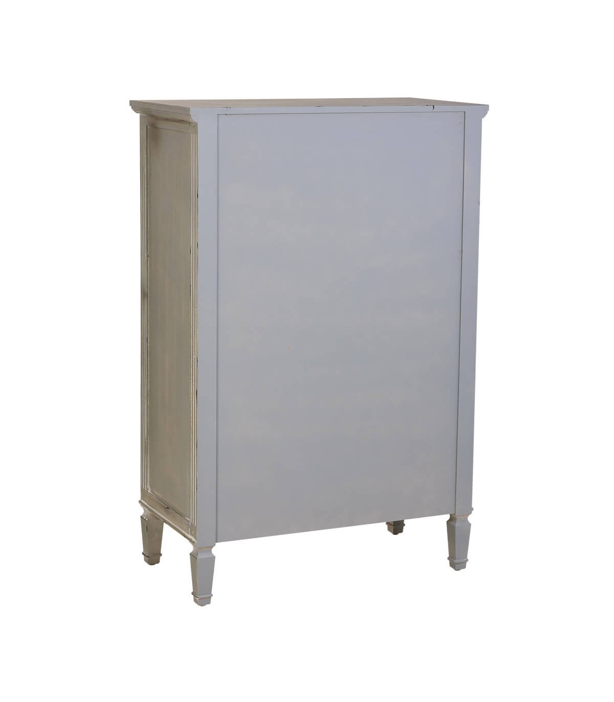 Los tiradores metálicos en tono envejecido aportan un toque vintage, resaltando su estilo clásico, provenzal o shabby chic. Perfecta para salones, comedores o dormitorios, esta vitrina es una pieza artesanal con detalles únicos que reflejan la calidez de la madera trabajada a mano.