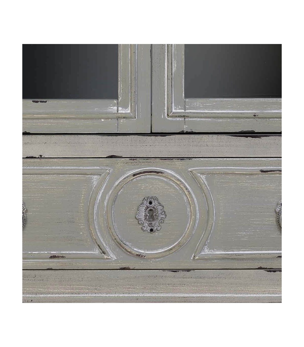🏛️ Vitrina Baja Clásica – Madera Lacada en Gris con Pátina Blanca ✨