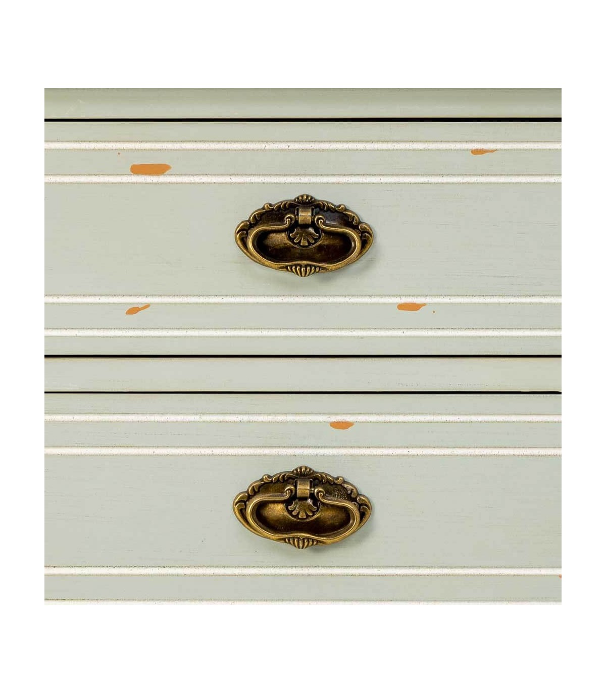 🎨 Acabado: Pintura verde musgo rozada con detalles en blanco y tiradores bronce envejecido. Fabricación artesanal. entendemos las variaciones de tonalidad, tamaño y forma o ciertas imperfecciones (grietas, nudos, marcas) como un valor añadido que la convierten en pieza única.
