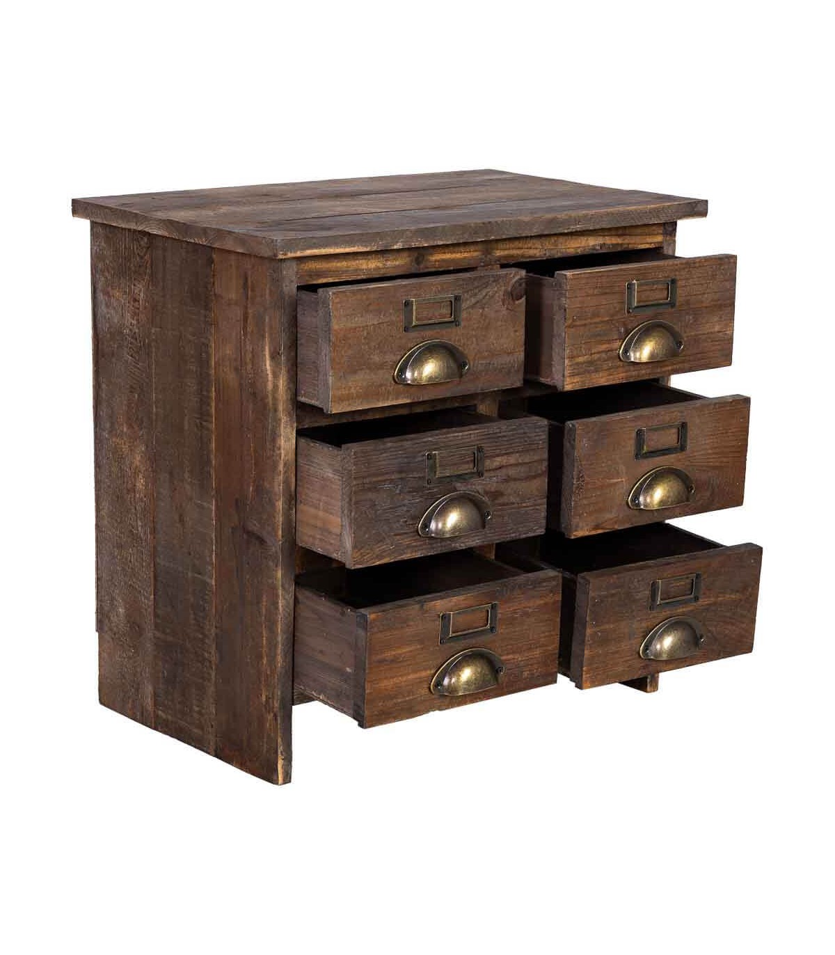 🌿 Mesita de Noche Rústica con 6 Cajones – Madera Reciclada y Acabado Envejecido ✨