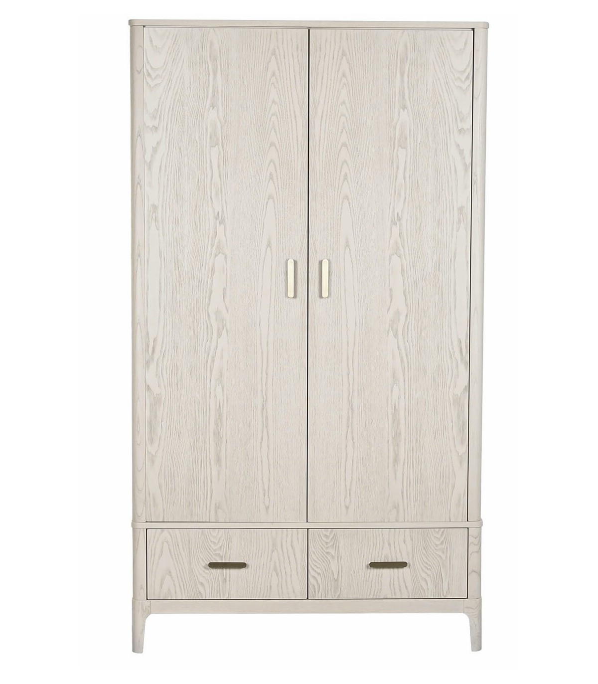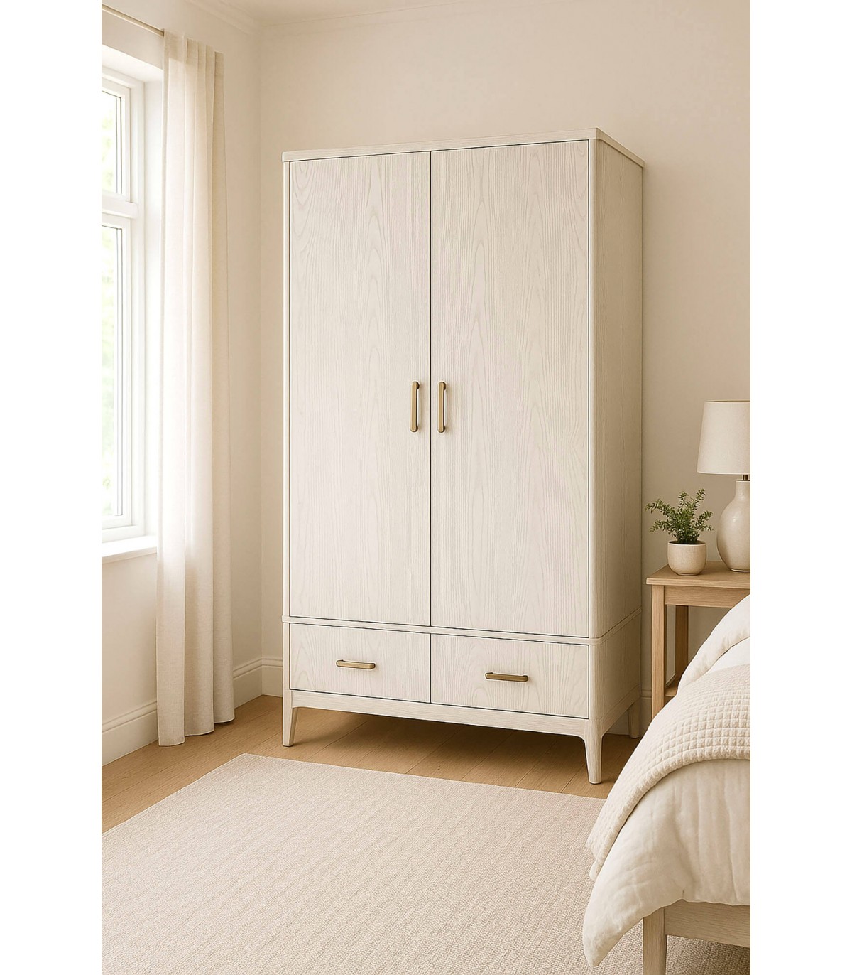 🚪 Armario Ropero de Madera Estilo Nórdico – Fresno Blanco y Detalles Dorados ✨