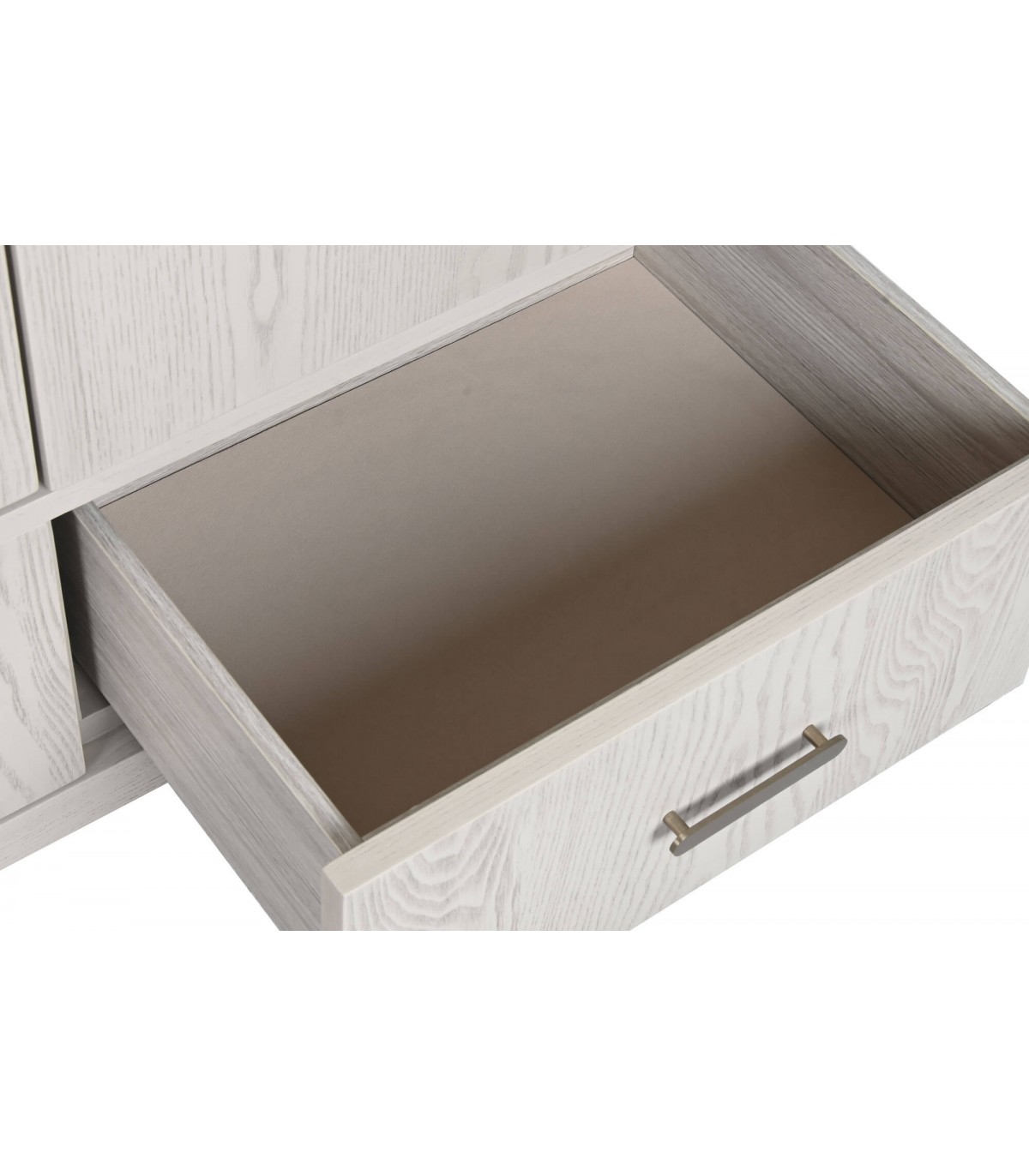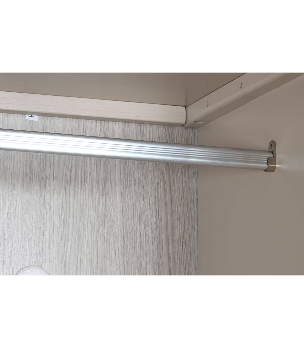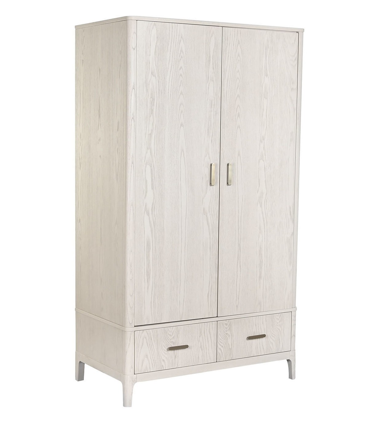 Aporta funcionalidad y serenidad con este armario ropero de inspiración nórdica, fabricado en MDF con acabado imitación fresno blanco. Su diseño compacto incluye una barra metálica para colgar, dos estantes interiores y dos cajones inferiores que facilitan el almacenaje. Los tiradores metálicos en tono dorado añaden un sutil acento decorativo, sin romper la estética natural y luminosa de la pieza. Ideal para dormitorios que buscan orden, equilibrio y ligereza visual.