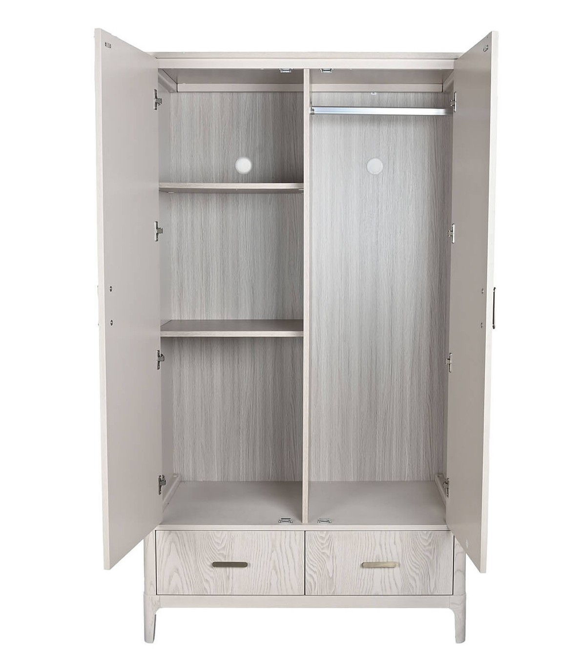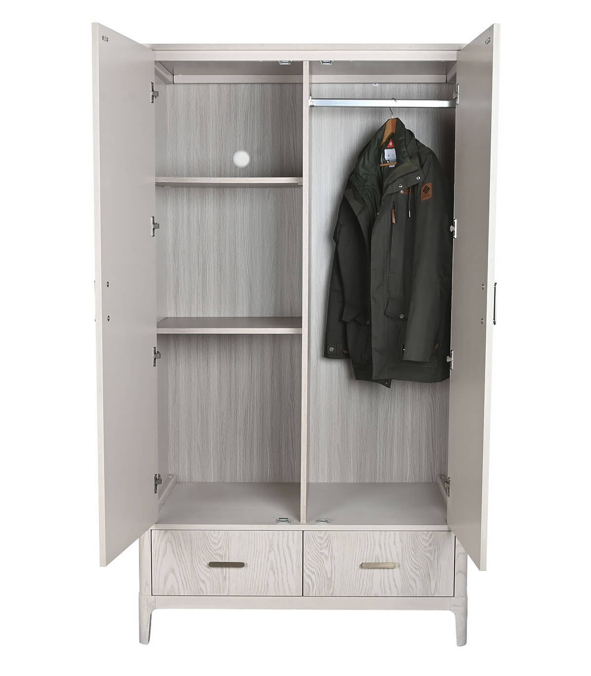 • Armario ropero, 2 puertas, 2 cajones, 1 barra para colgar y 2 baldas, estilo nórdico.
