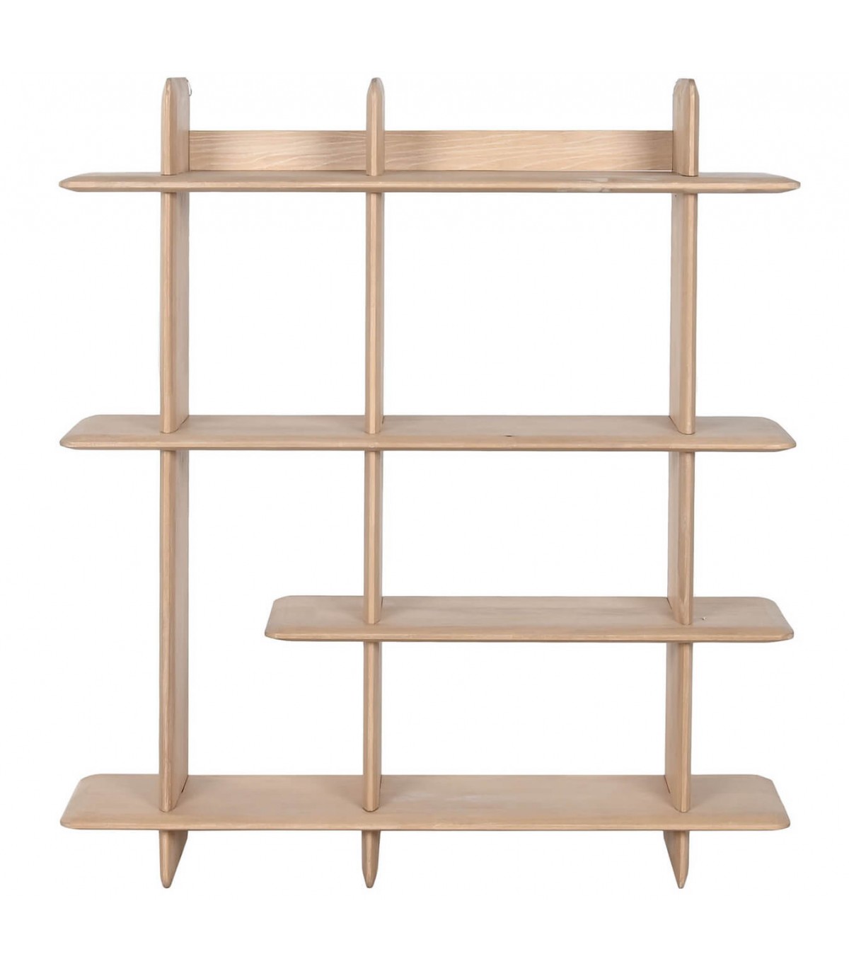Su composición geométrica con varios estantes permite organizar libros, decoración o accesorios con estilo y orden. Perfecta para salones, dormitorios o despachos, combina ligereza visual con practicidad. Una pieza que realza la decoración con un espíritu nórdico y sereno, ideal para quienes buscan sencillez y armonía.