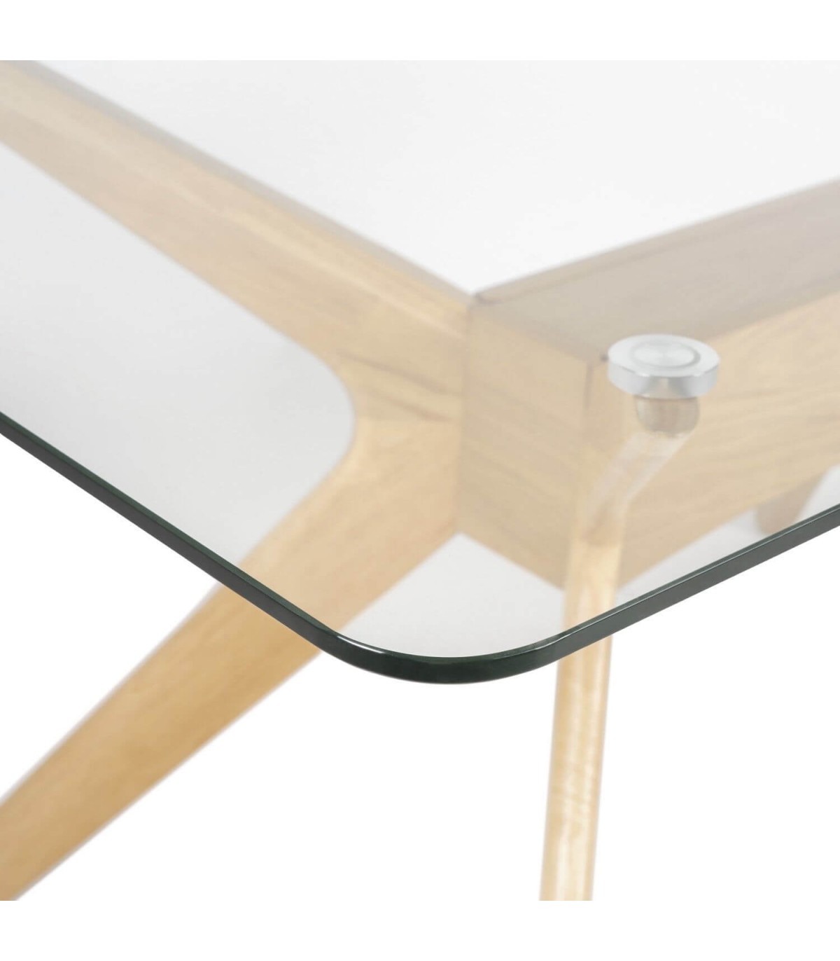 MESA DE COMEDOR RECTANGULAR 140 X 90 X 75 ALLEN MADERA ROBLE Y CRISTAL