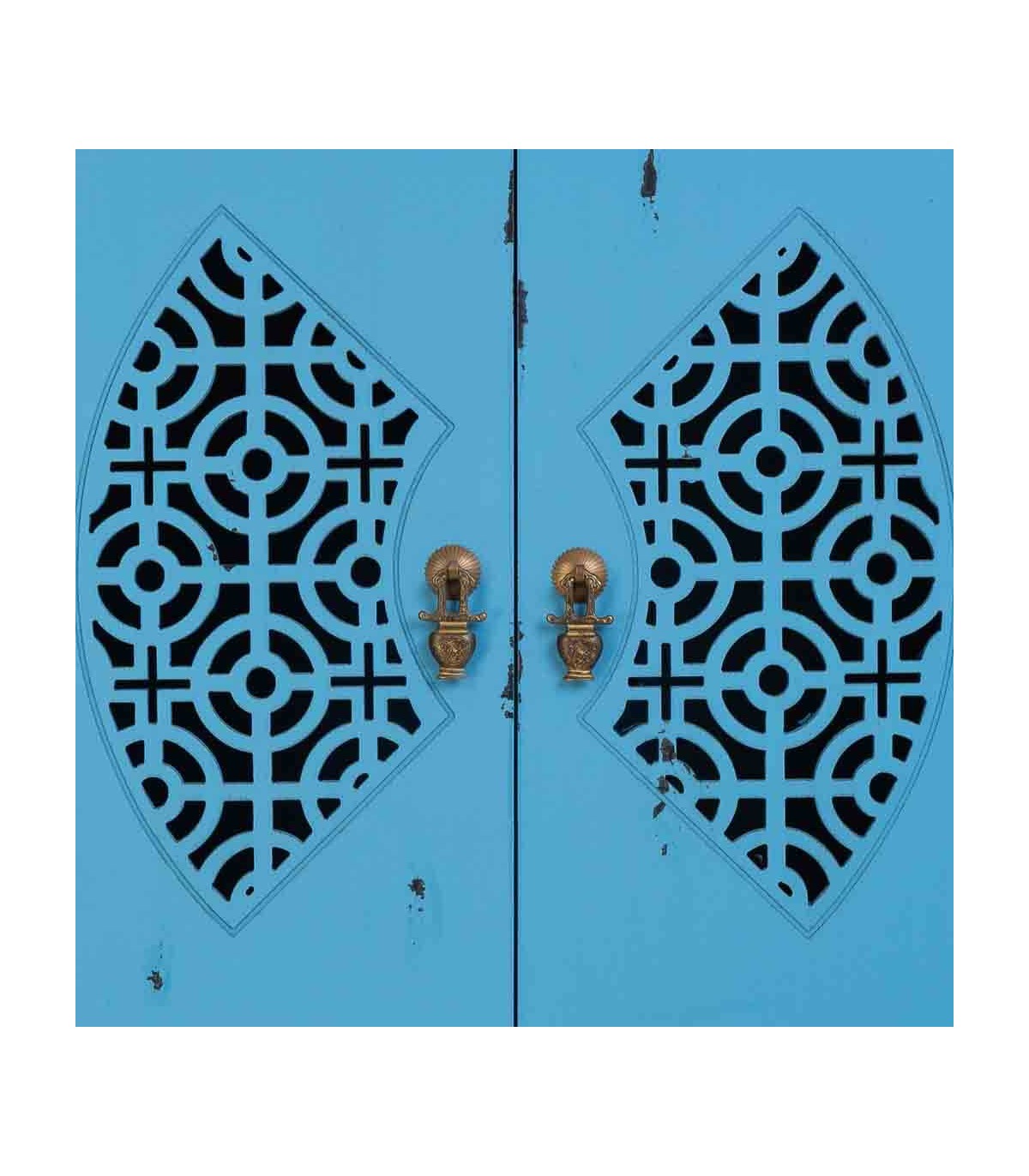 🏮 Armario Alacena Oriental – Madera Tallada en Azul Envejecido ✨