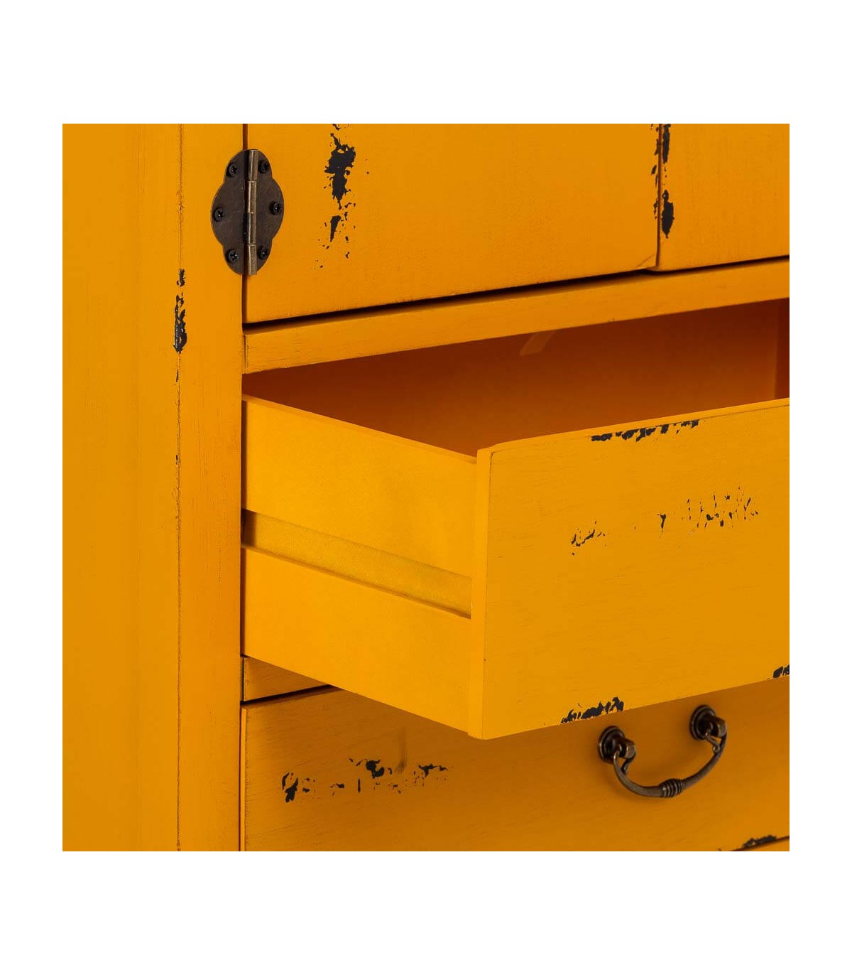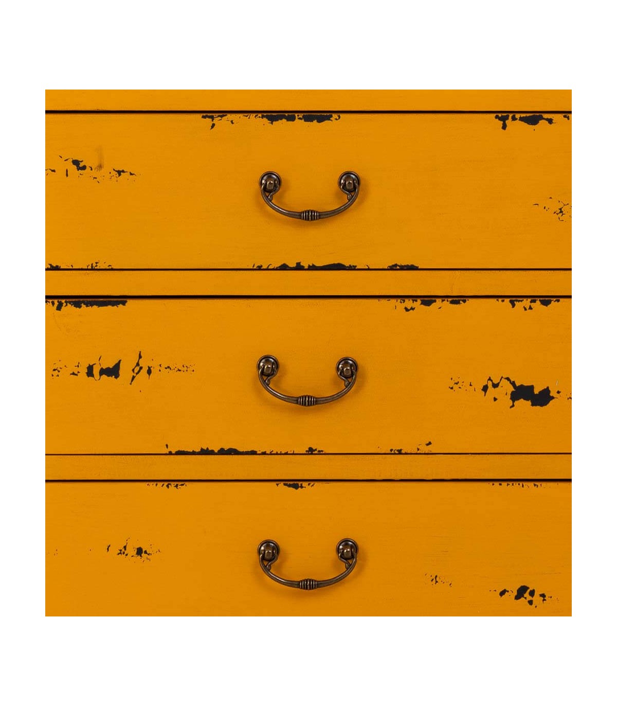 🎨 Acabado: Madera tallada y decapada en amarillo, tiradores de bronce. Fabricación artesanal. entendemos las variaciones de tonalidad, tamaño y forma o ciertas imperfecciones (grietas, nudos, marcas) como un valor añadido que la convierten en pieza única.
