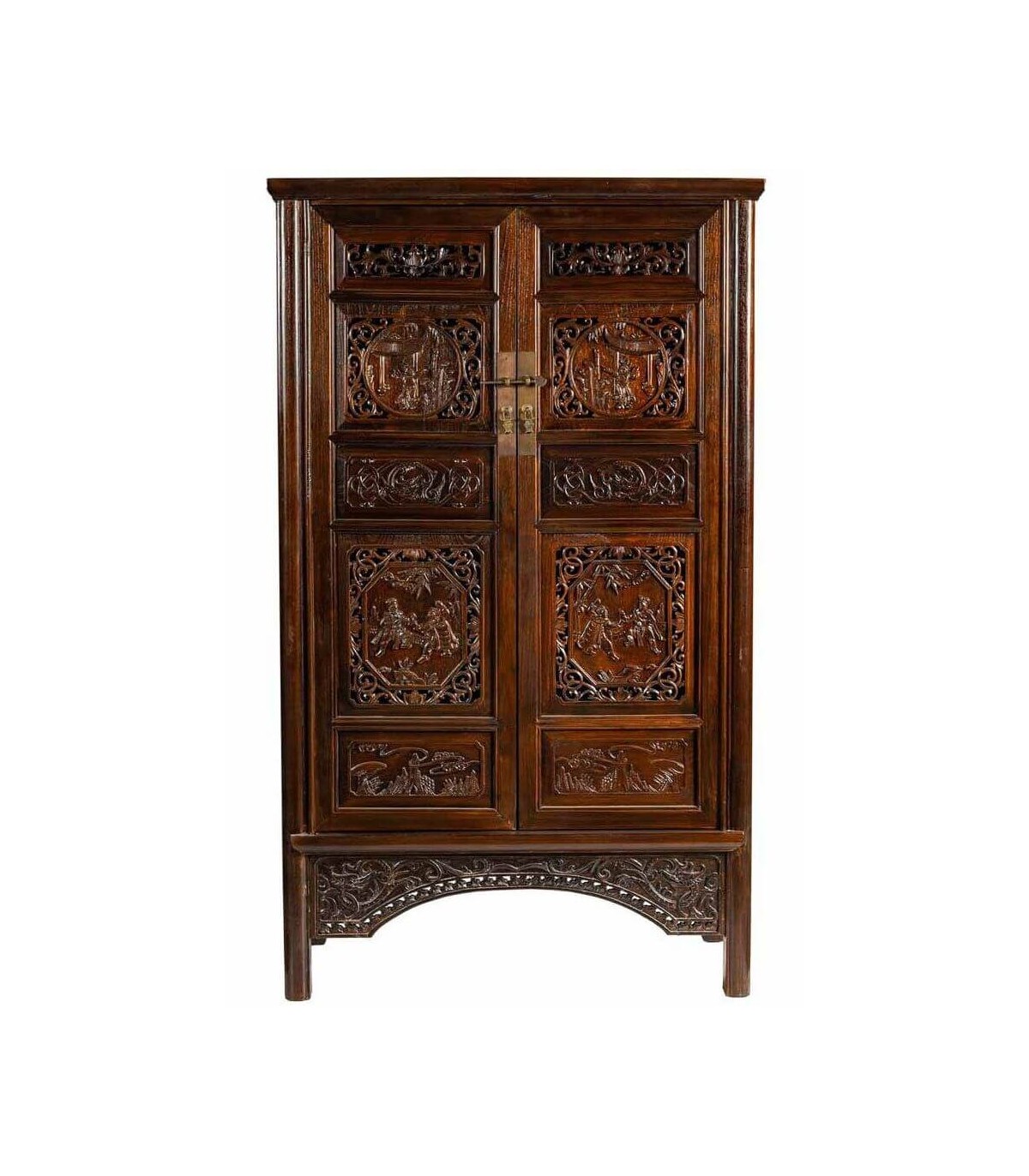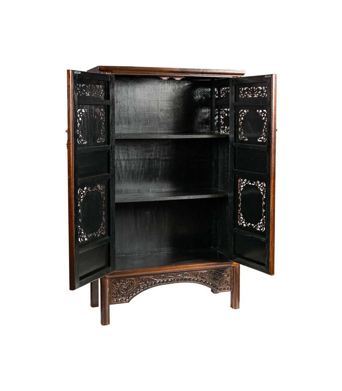 Armario de estilo oriental realizado en madera de olmo, un mueble de gran calidad realizado 100 % a mano, un mueble muy importante que le dará un plus de prestancia a tu salón o zona auxiliar, adaptable a cualquier tipo de decoración.