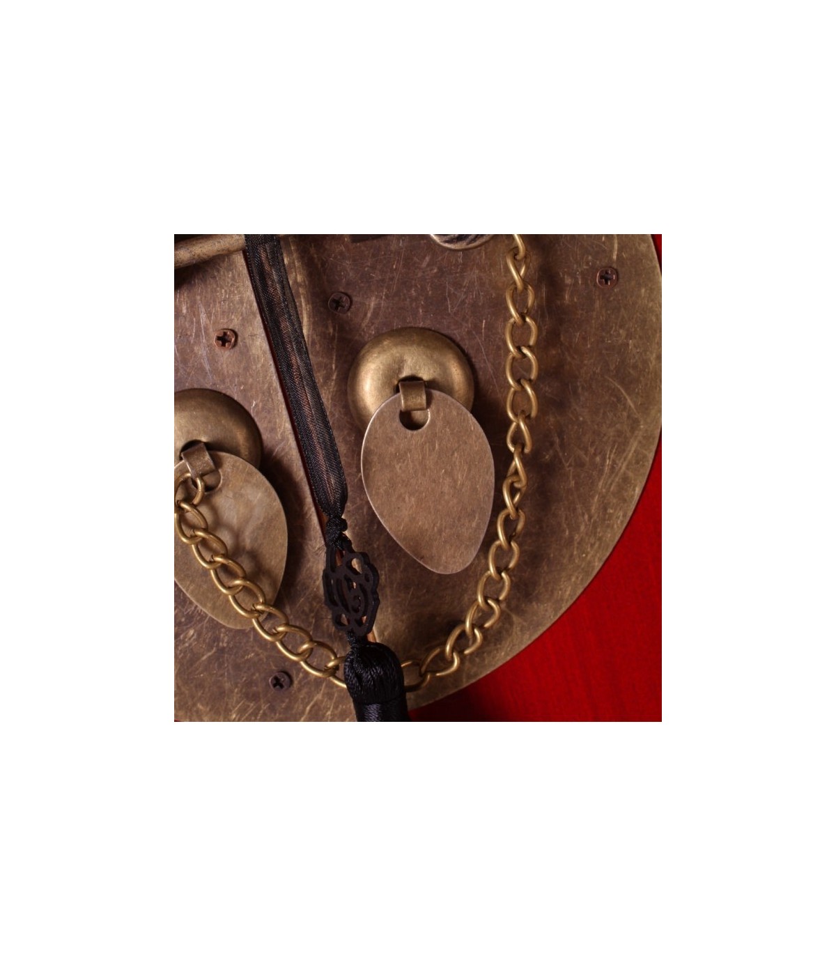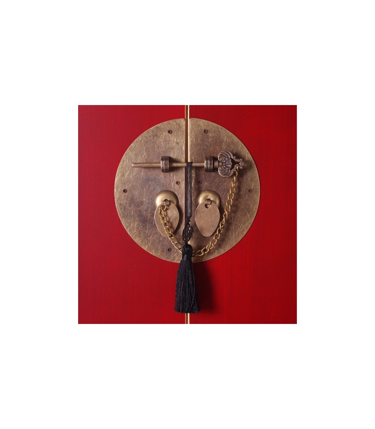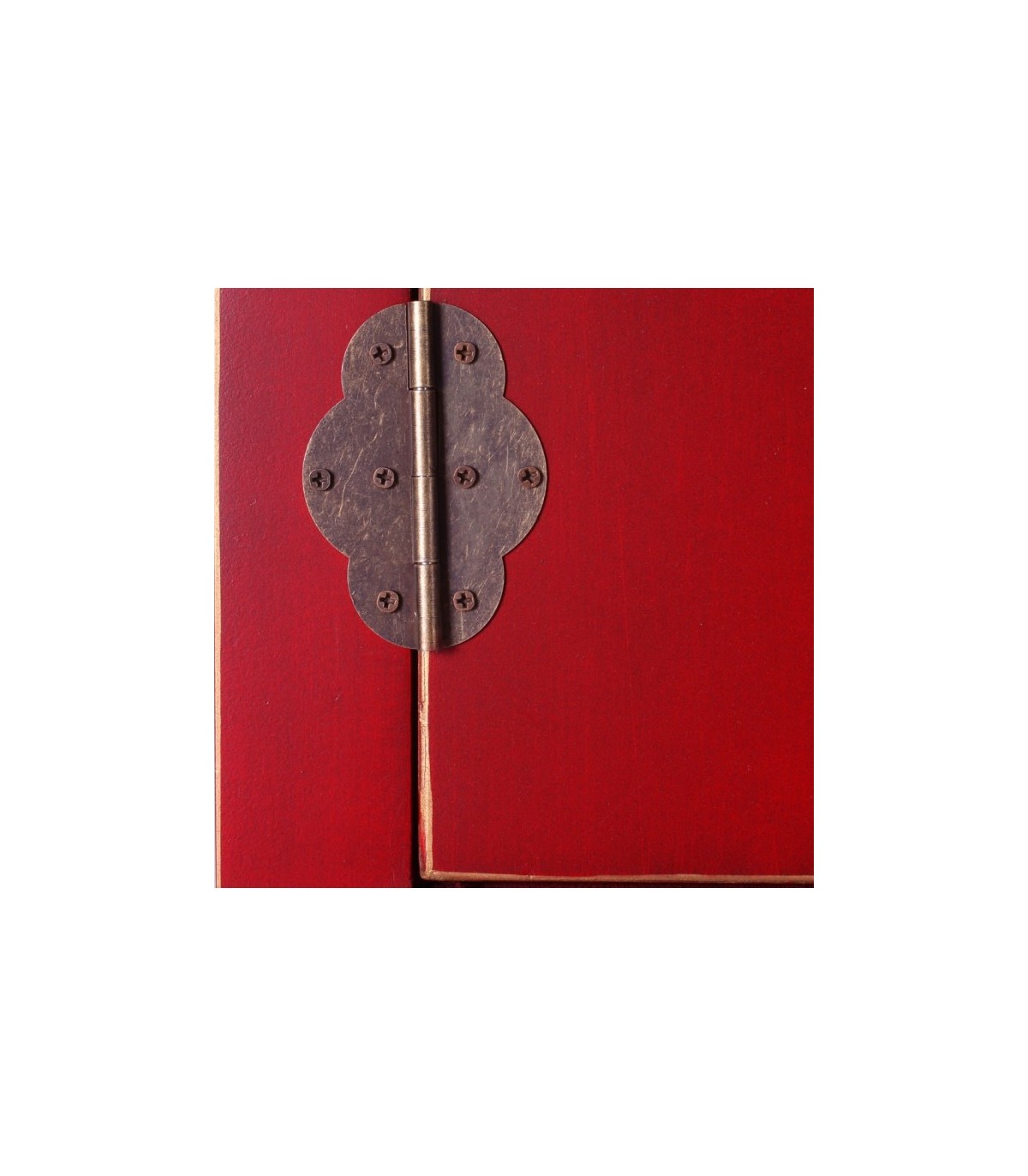 Acabado, rojo con filetes dorados, tiradores en latón pavonado.