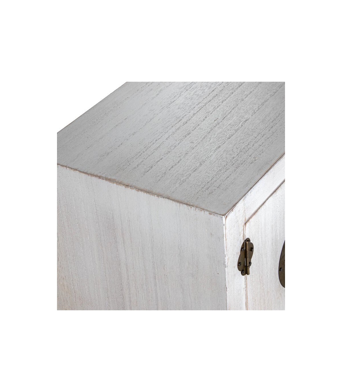 Es perfecta para pasillos, recibidores o rincones especiales donde se busque dar un toque cultural refinado. Sus dos cajones y puertas ofrecen almacenaje funcional sin renunciar a la estética. Una pieza compacta y versátil que transforma cualquier entrada en un gesto de estilo.