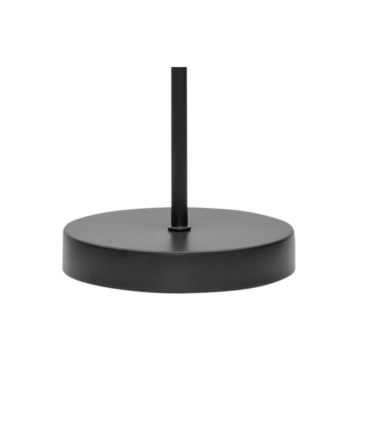 La base de metal negro mate aporta estabilidad y elegancia. Ideal para iluminar y decorar mesillas, cómodas o rincones especiales con un aire relajado y sofisticado.