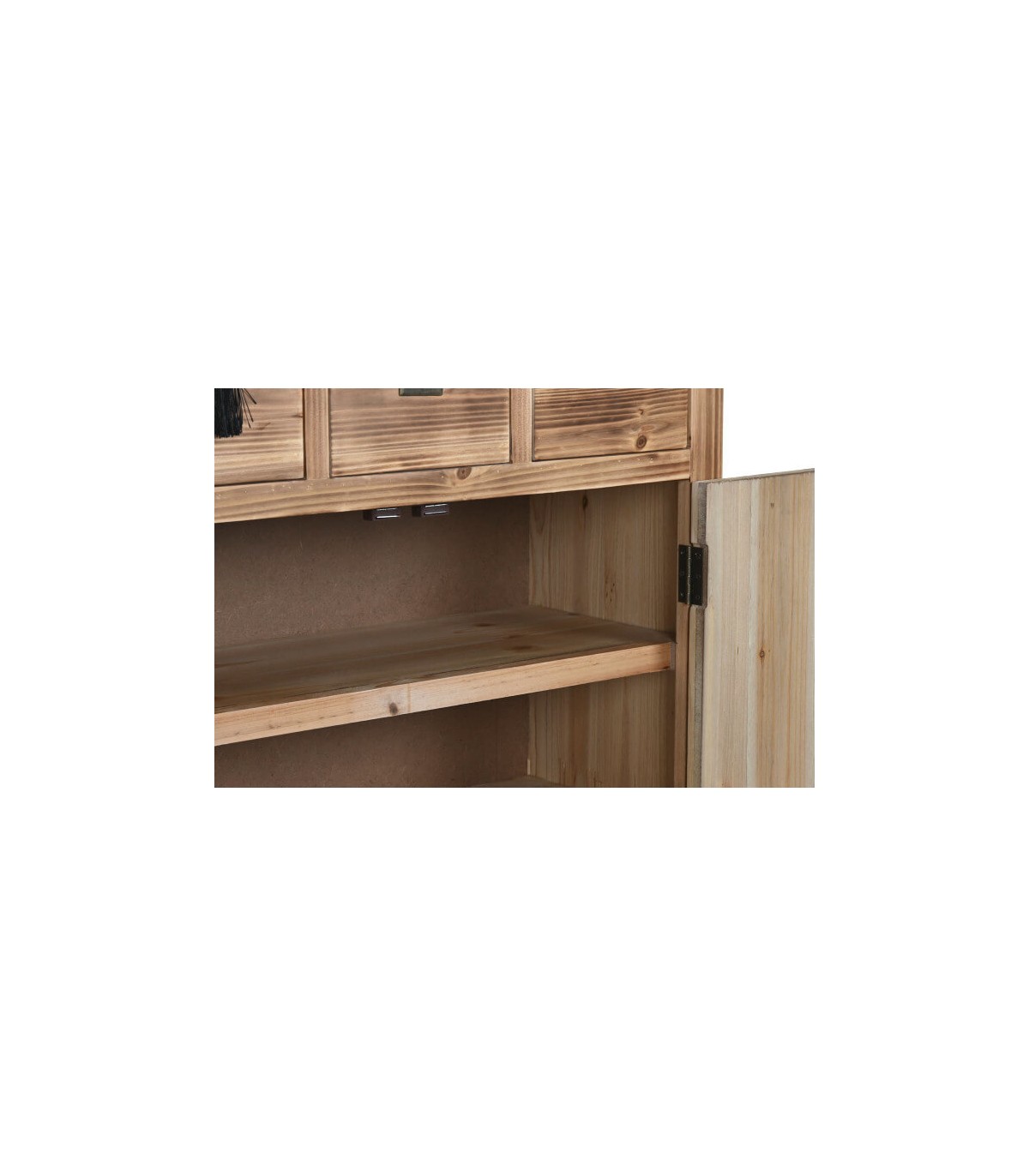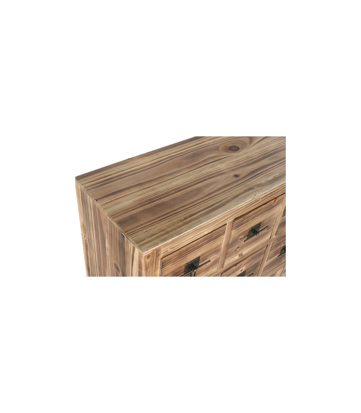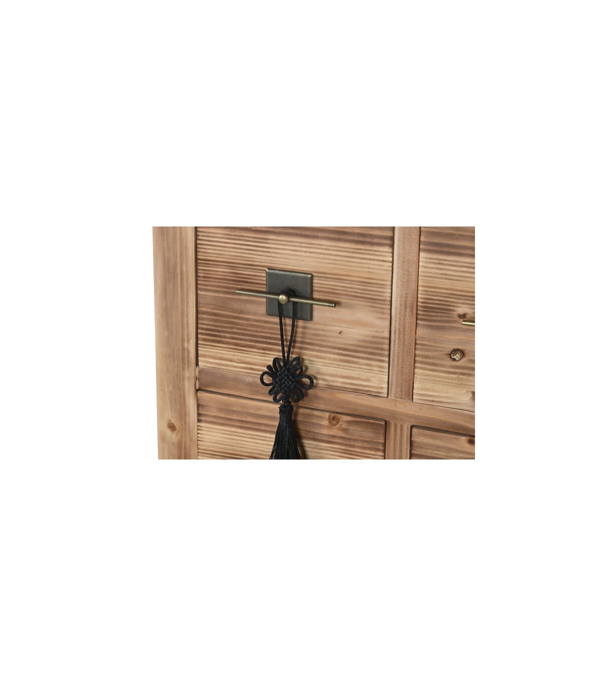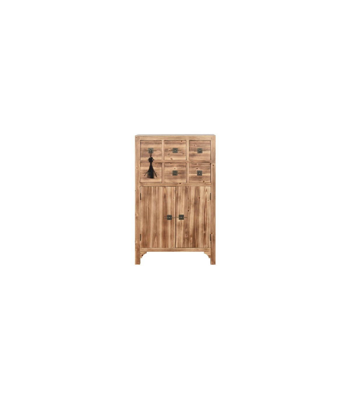 Taquillón de estilo oriental realizada en madera de abeto natural con los tiradores acabado bronce, de buena capacidad y muy decorativa, perfecta para tu pequeña entrada o como mueble auxiliar.