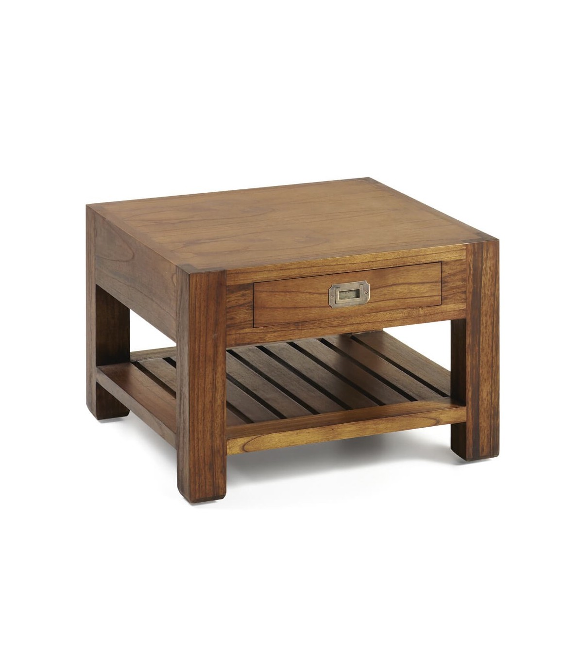 Mesita auxiliar de nuestra colección de muebles Star, Una colección realizada en madera maciza de mindi de estilo colonial, una gran colección con muebles para todas las zonas de tu casa, de líneas rectas y atemporales un mueble que aporta calidez y presecia, haz tu composición con los muebles auxiliares o con su modular Combi, donde podrás diseñar tu mueble principal.