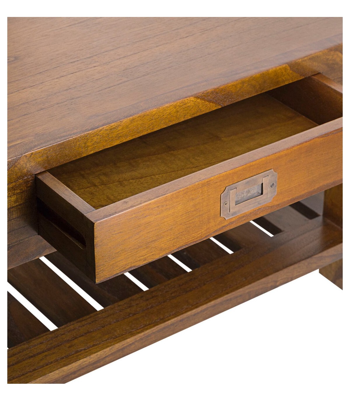 - Acabado, madera maciza acabado teca, tiradores bronce.