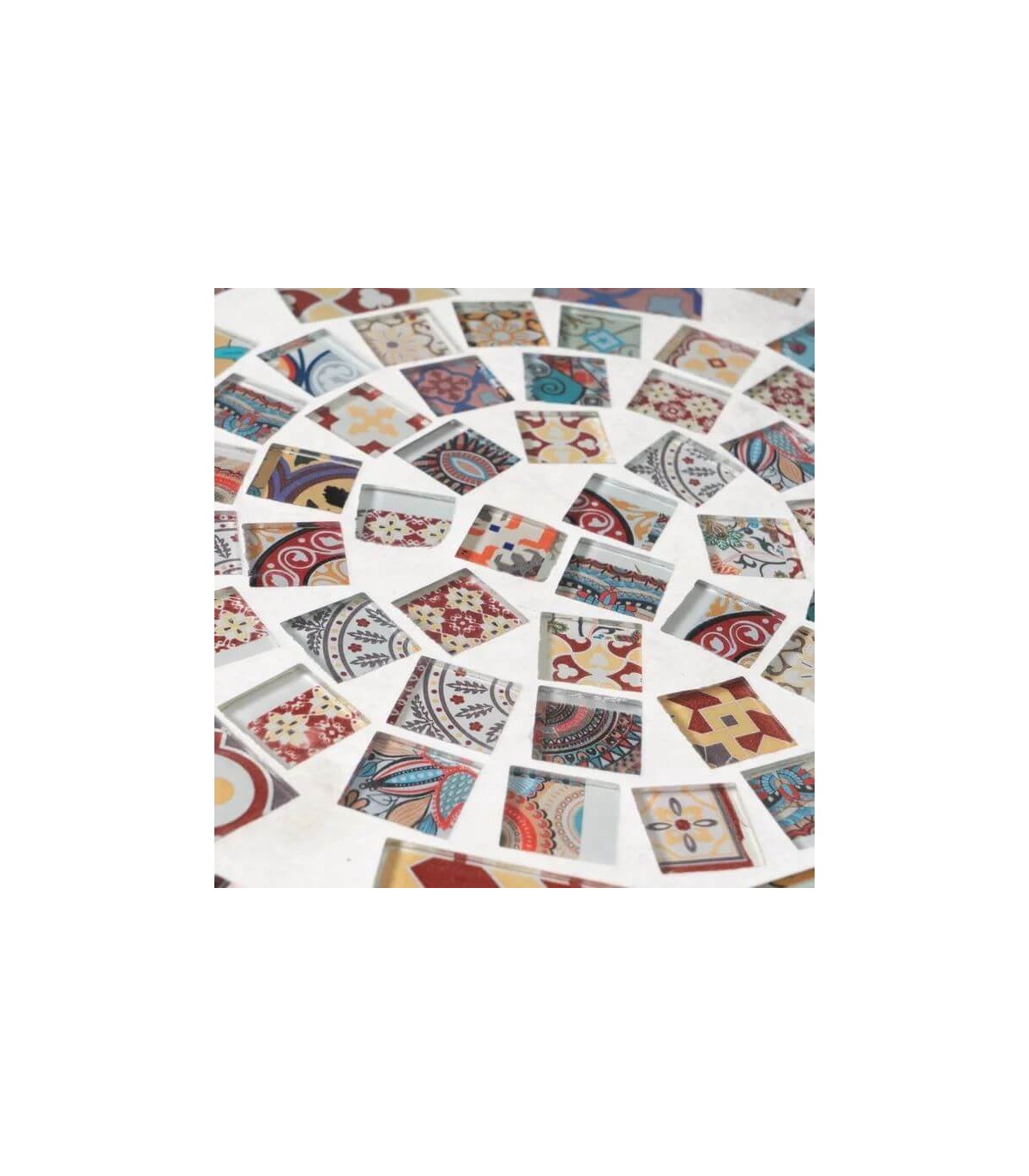 - Acabado, metal hierro negro, incrustaciones en cerámica tipo collage.