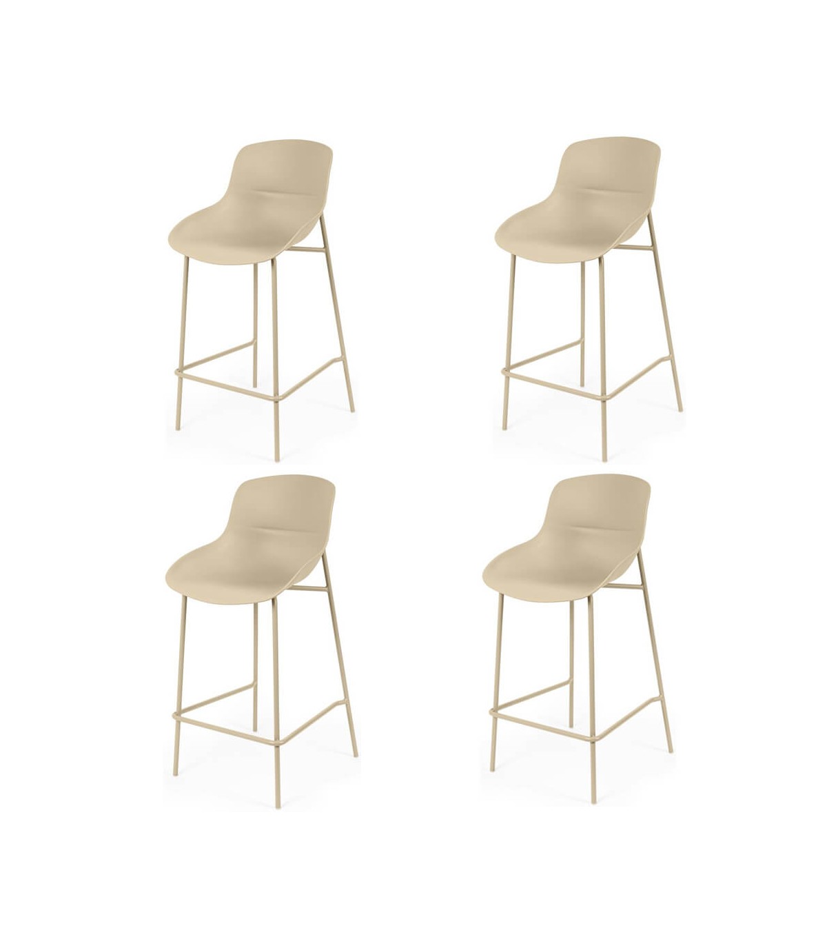 SET 4 TABURETES BAJOS 47 X 51 X 96 LIDETA POLIPROPILENO Y METAL BEIGE