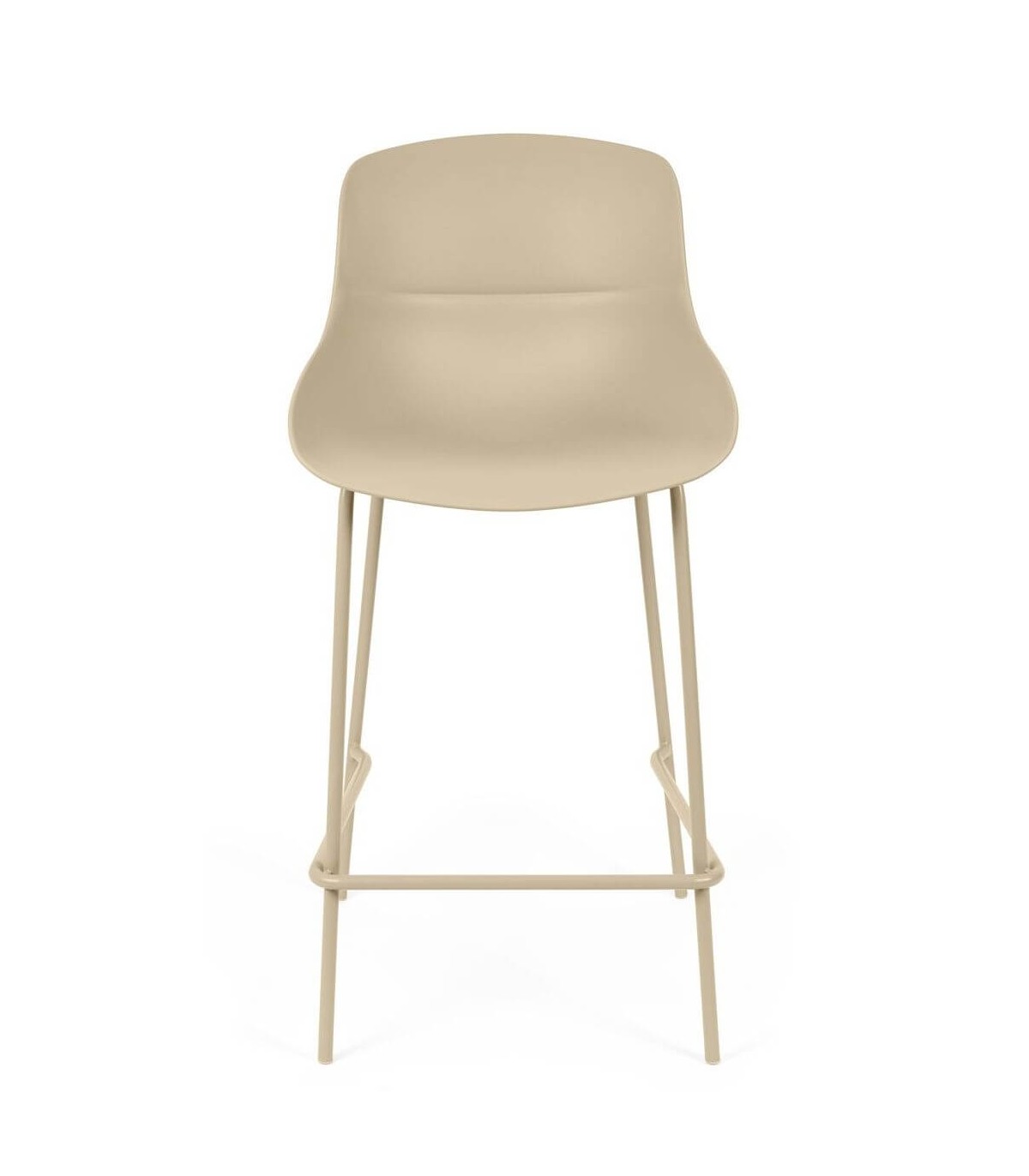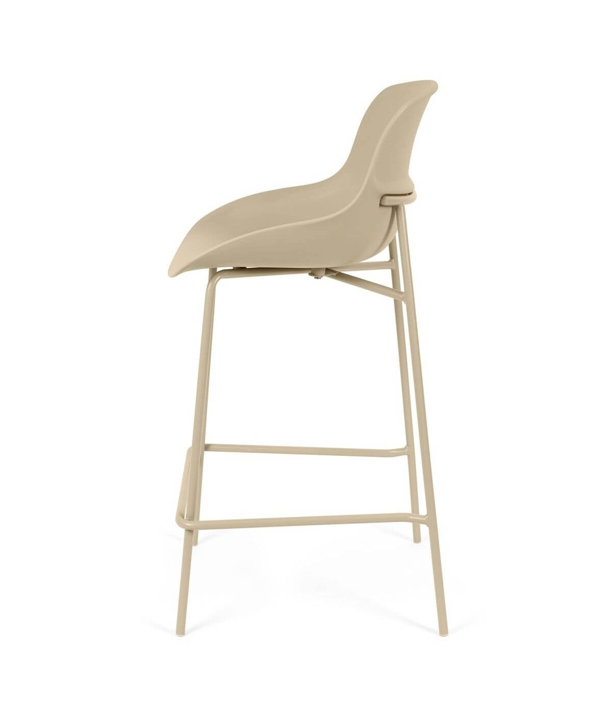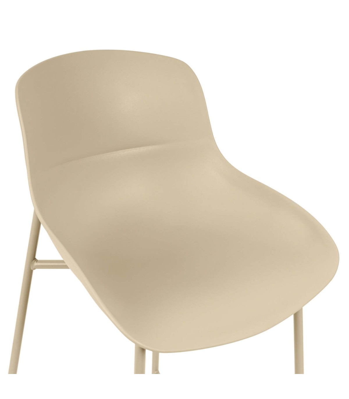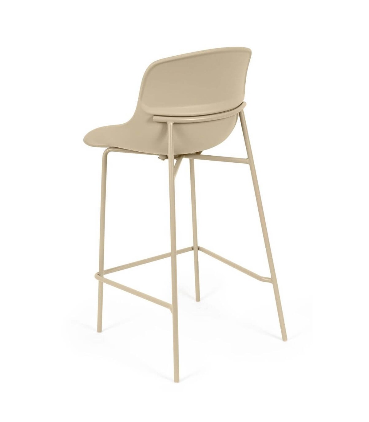 Set de cuatro taburetes bajos de inspiración nórdica que equilibran comodidad, diseño y ligereza en una composición visual serena. Fabricados en polipropileno beige con estructura metálica, ofrecen resistencia y durabilidad sin renunciar a la elegancia. Su tono neutro combina con madera clara, piedra o microcemento, aportando calidez a cualquier ambiente contemporáneo.