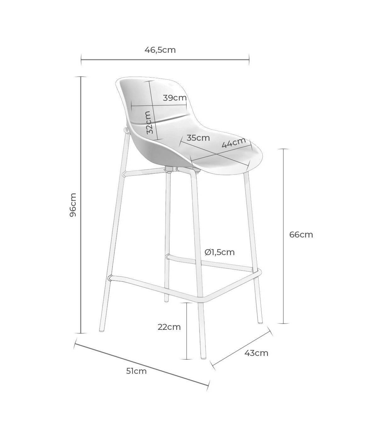 El asiento ergonómico y el acabado mate facilitan la limpieza y realzan la pureza formal del conjunto. Ideales para cocinas abiertas o barras bajas donde se busca un equilibrio entre funcionalidad y estética. Una propuesta atemporal que transforma lo cotidiano en bienestar sencillo y duradero.