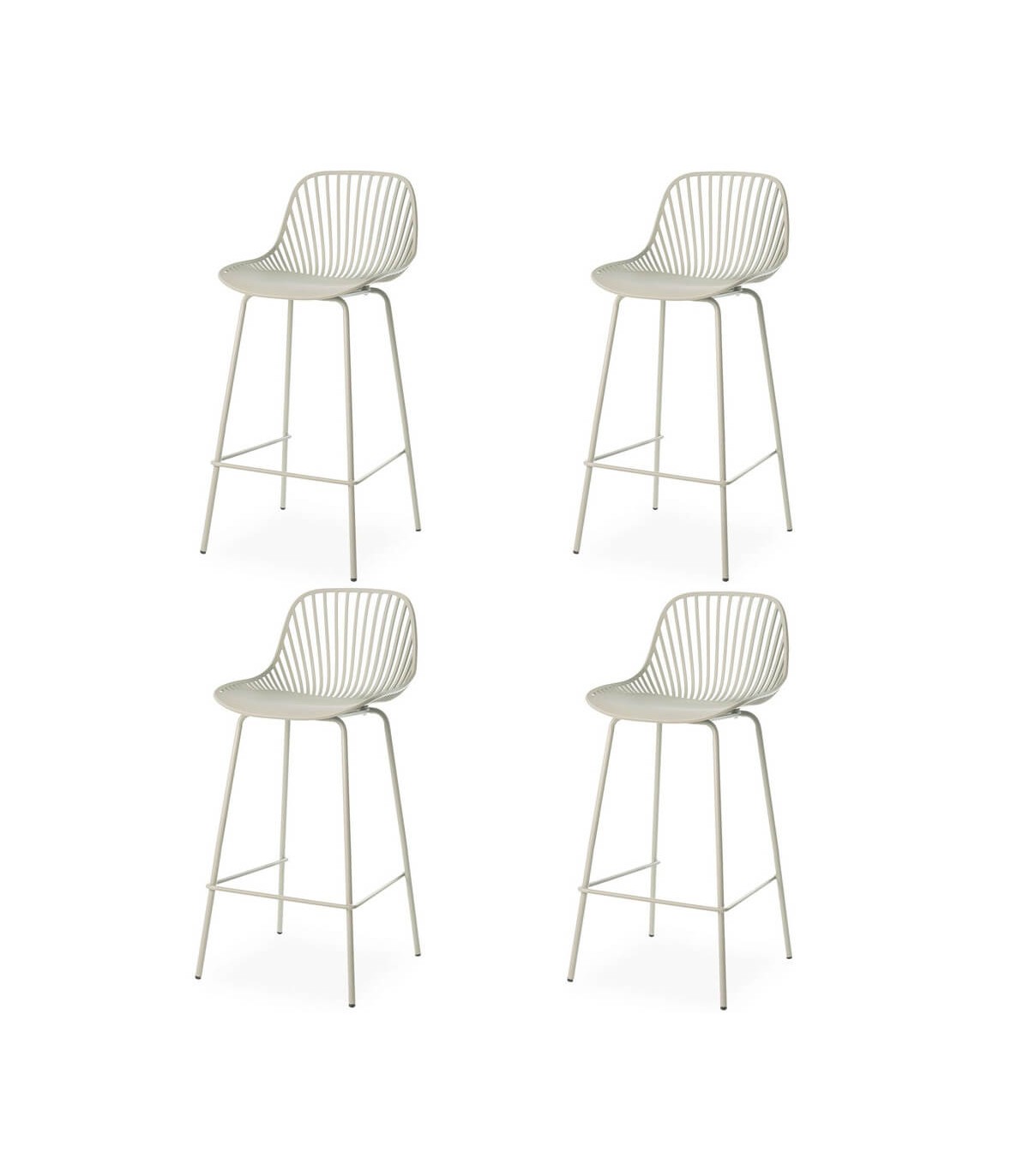 Set de cuatro taburetes de estilo nórdico pensados para aportar ligereza visual y funcionalidad en espacios actuales. El diseño de líneas curvas crea una silueta cómoda y equilibrada, fácil de integrar en cocinas y zonas de barra. La estructura metálica aporta estabilidad y resistencia para el uso diario.
