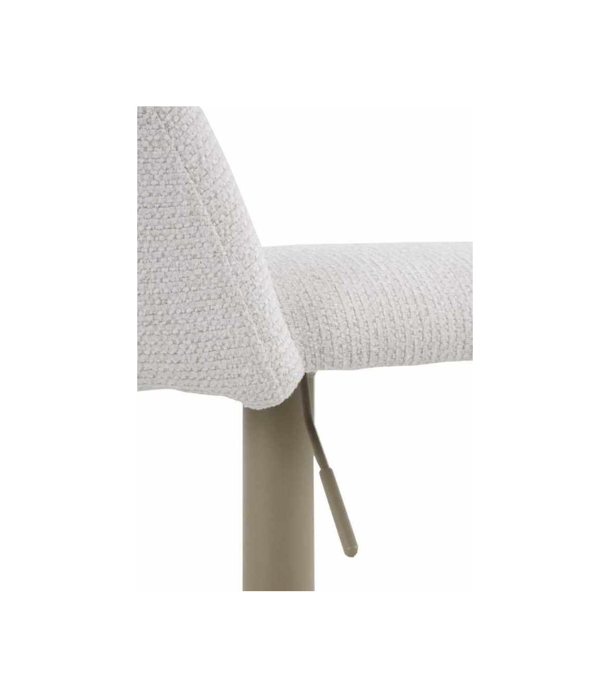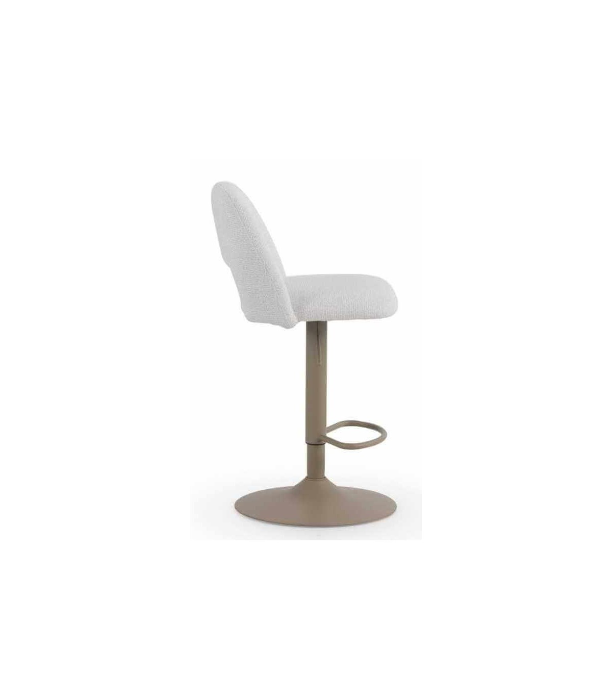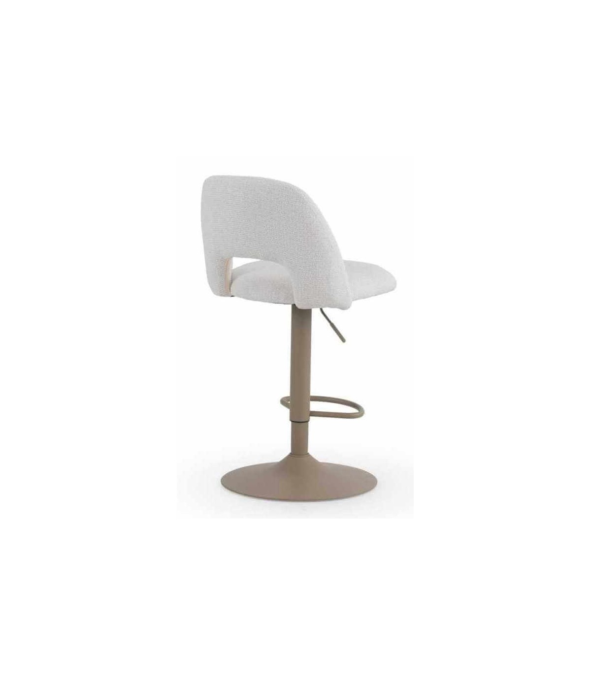 La estructura metálica en color topo introduce un contraste elegante y discreto, reforzando la estabilidad sin restar protagonismo al diseño. Giratorios y regulables en altura, se adaptan con naturalidad a distintos espacios y alturas, manteniendo una estética actual y bien integrada.