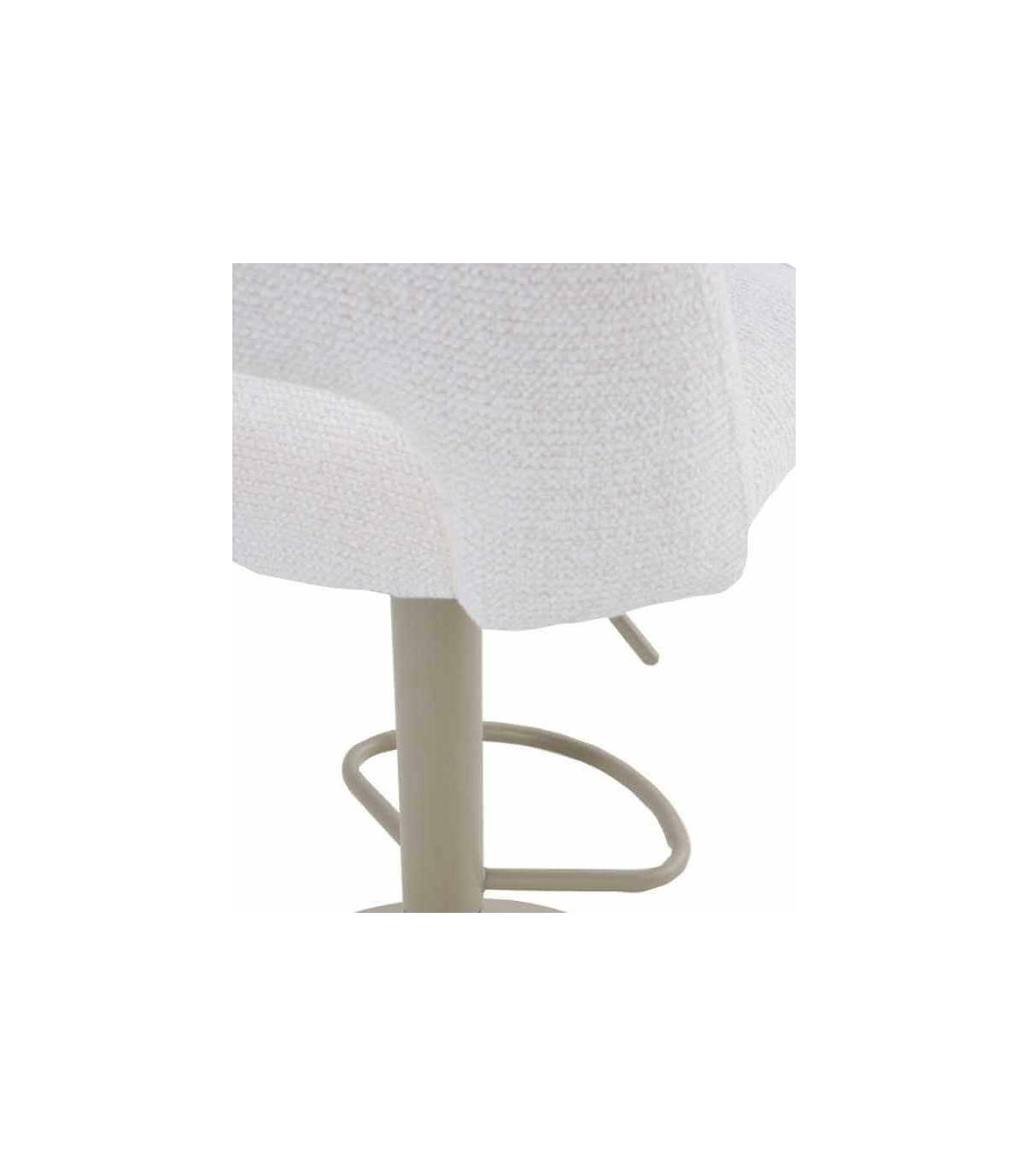Set de dos taburetes de estilo contemporáneo pensados para aportar ligereza visual y funcionalidad a cocinas o zonas de barra modernas, combinando líneas suaves con una presencia equilibrada. El asiento tapizado en tela chenilla blanca ofrece una textura agradable y luminosa que suaviza el conjunto y aporta confort en el uso diario.