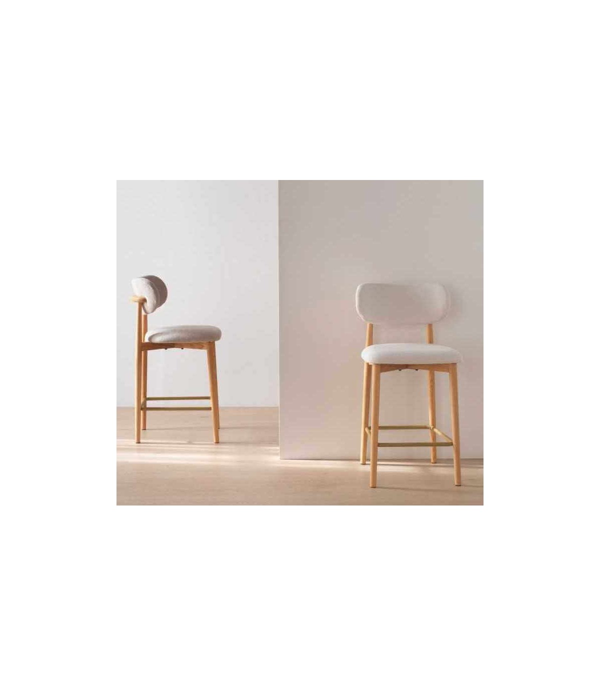 SET 2 TABIURETES 46 X 53 X 94 LUCILA MADERA NATURAL CHENILLA BLANCA