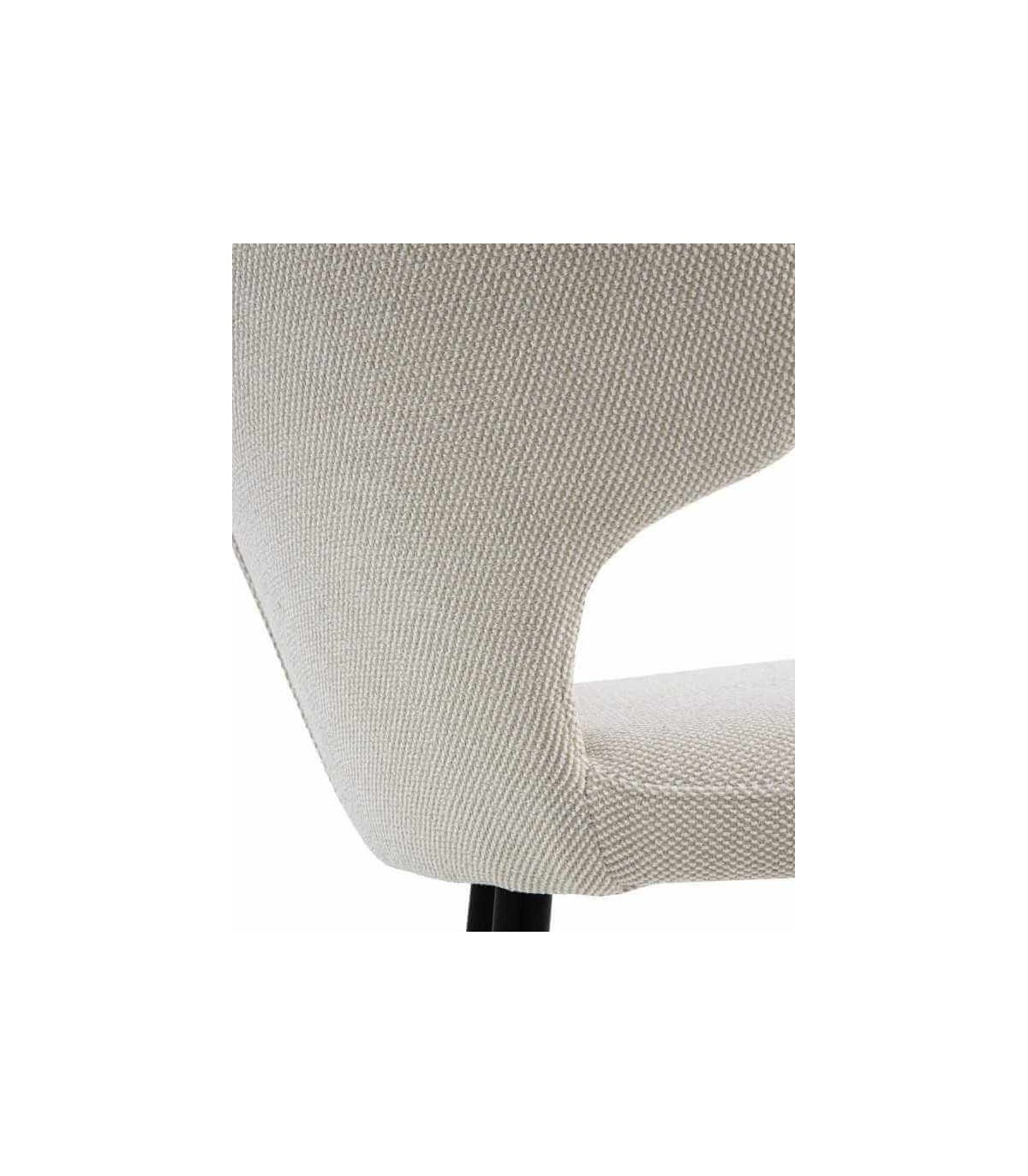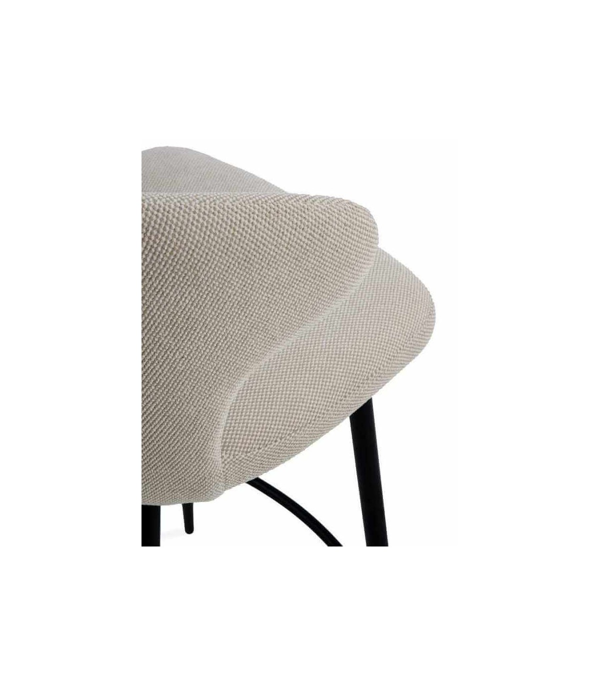 Con el asiento y respaldo tapizados en chenilla beige, ofrece una sensación de confort, mientras que sus patitas en metal negro le dan un toque moderno y elegante. Ideal para crear ambientes sofisticados, es perfecto para tu hogar.