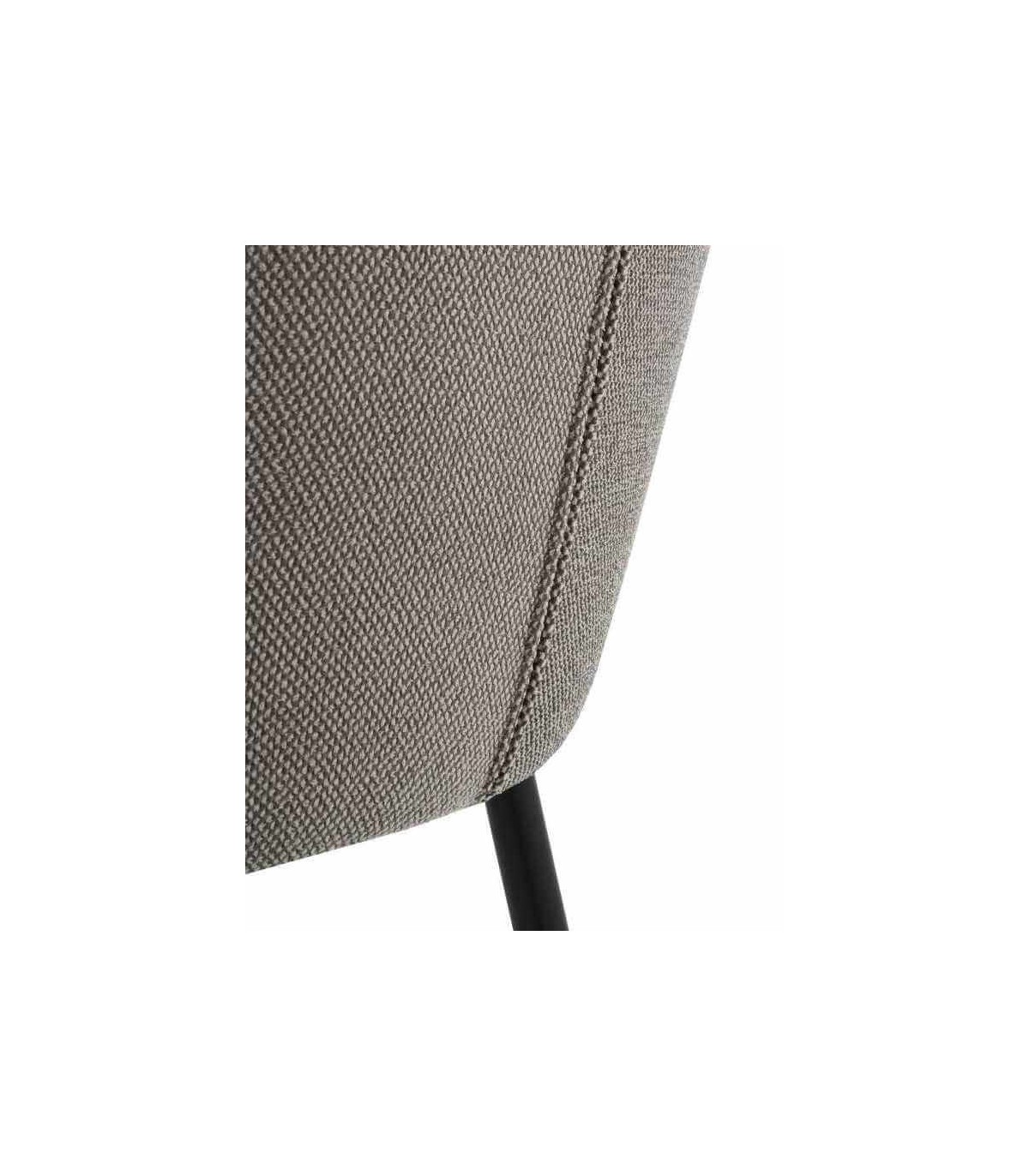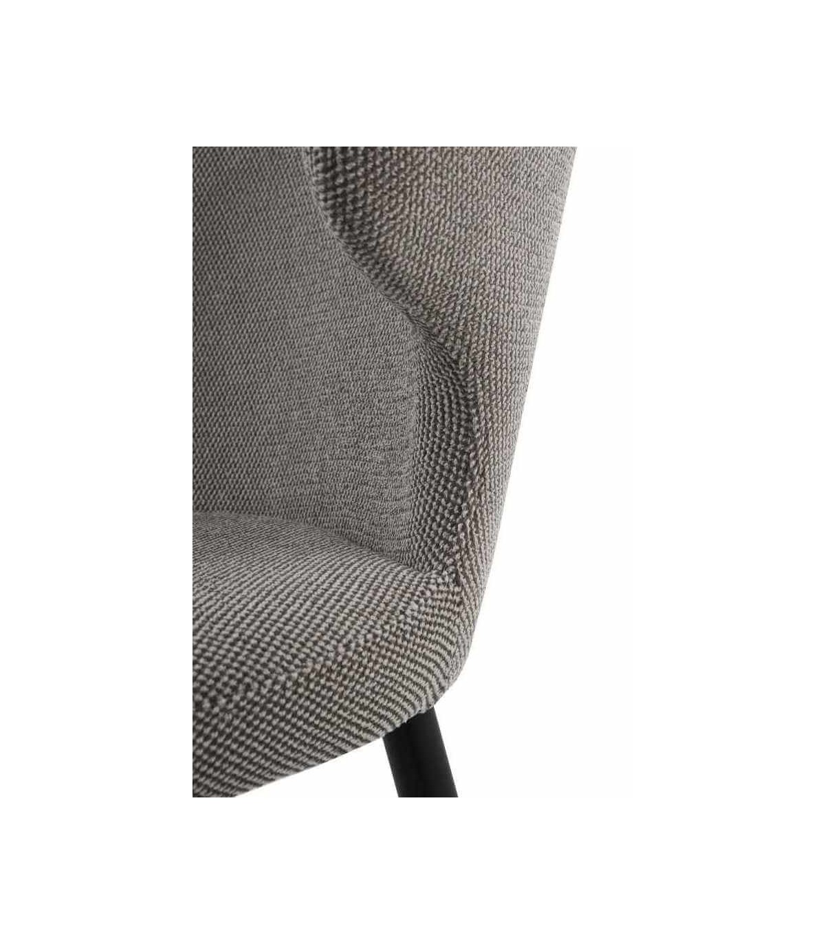 Acabado, metal negro, tela chenilla gris.